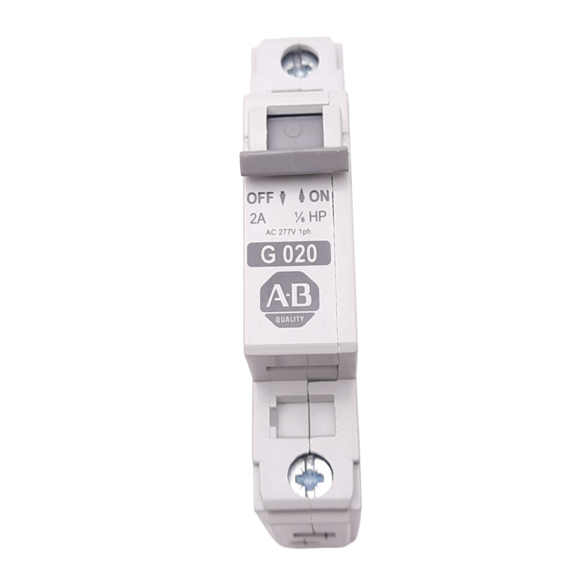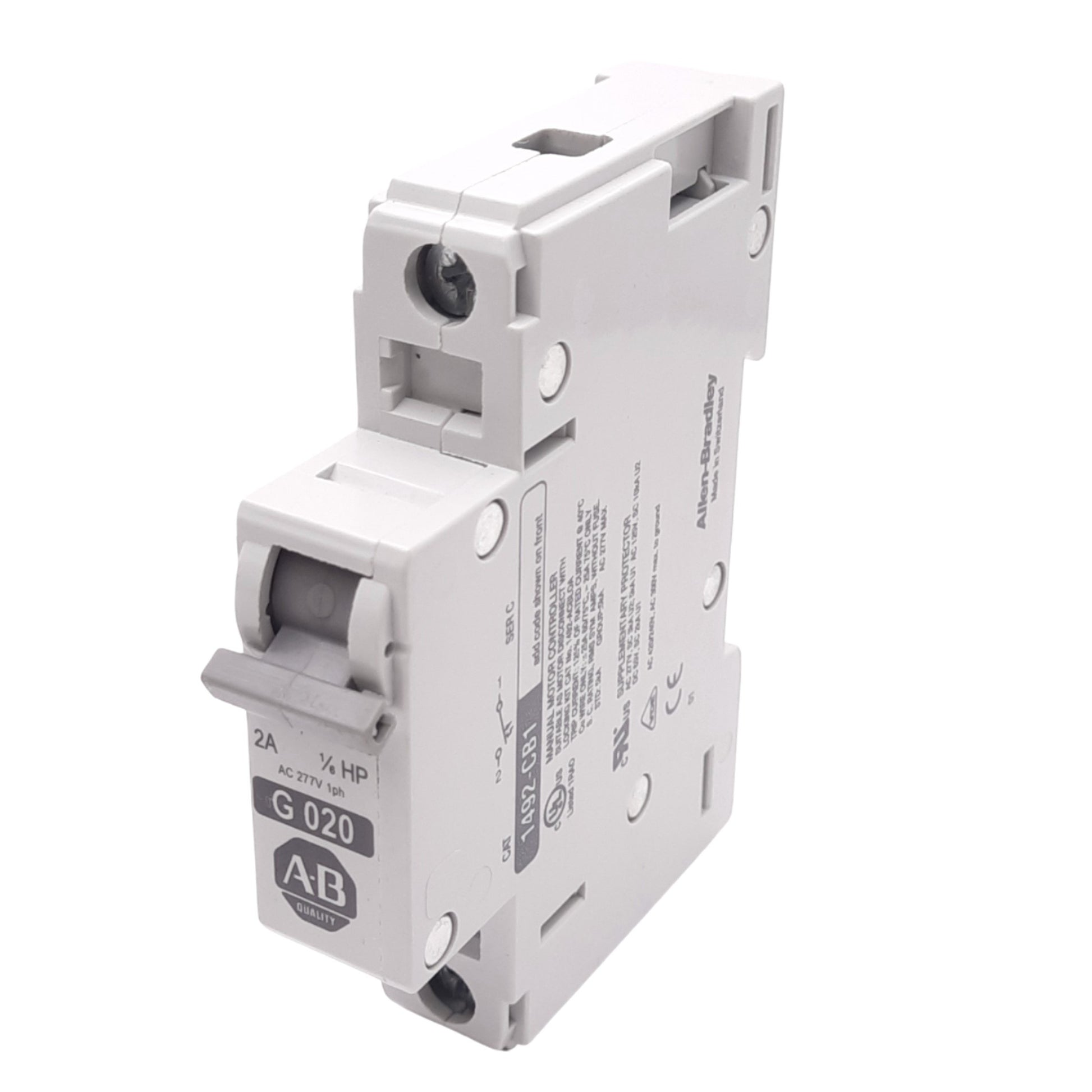 Used Allen Bradley 1492-CB1G020 Circuit Breaker, 1-Pole, 2A, 277VAC Max, DIN Rail