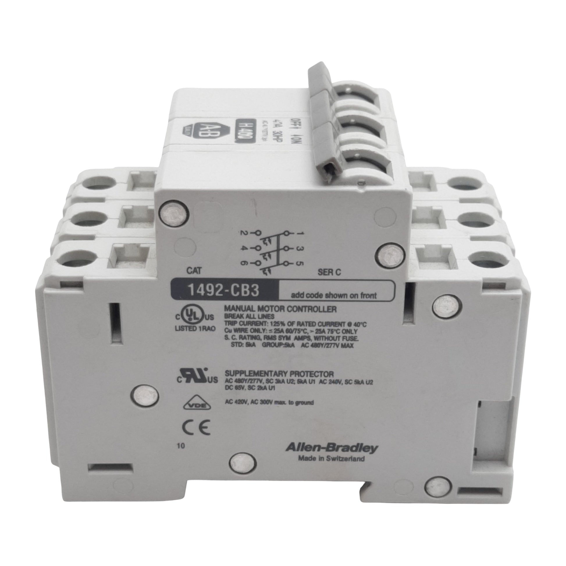 | Item Condition: Used SKU: SB-205322 ST32-2-H From our inventory we are selling a Allen Bradley 1492-CB3H400 Circuit Breaker, 3-Pole, 3-PH, 40A 480Y/277VAC 65VDC. Specifications: