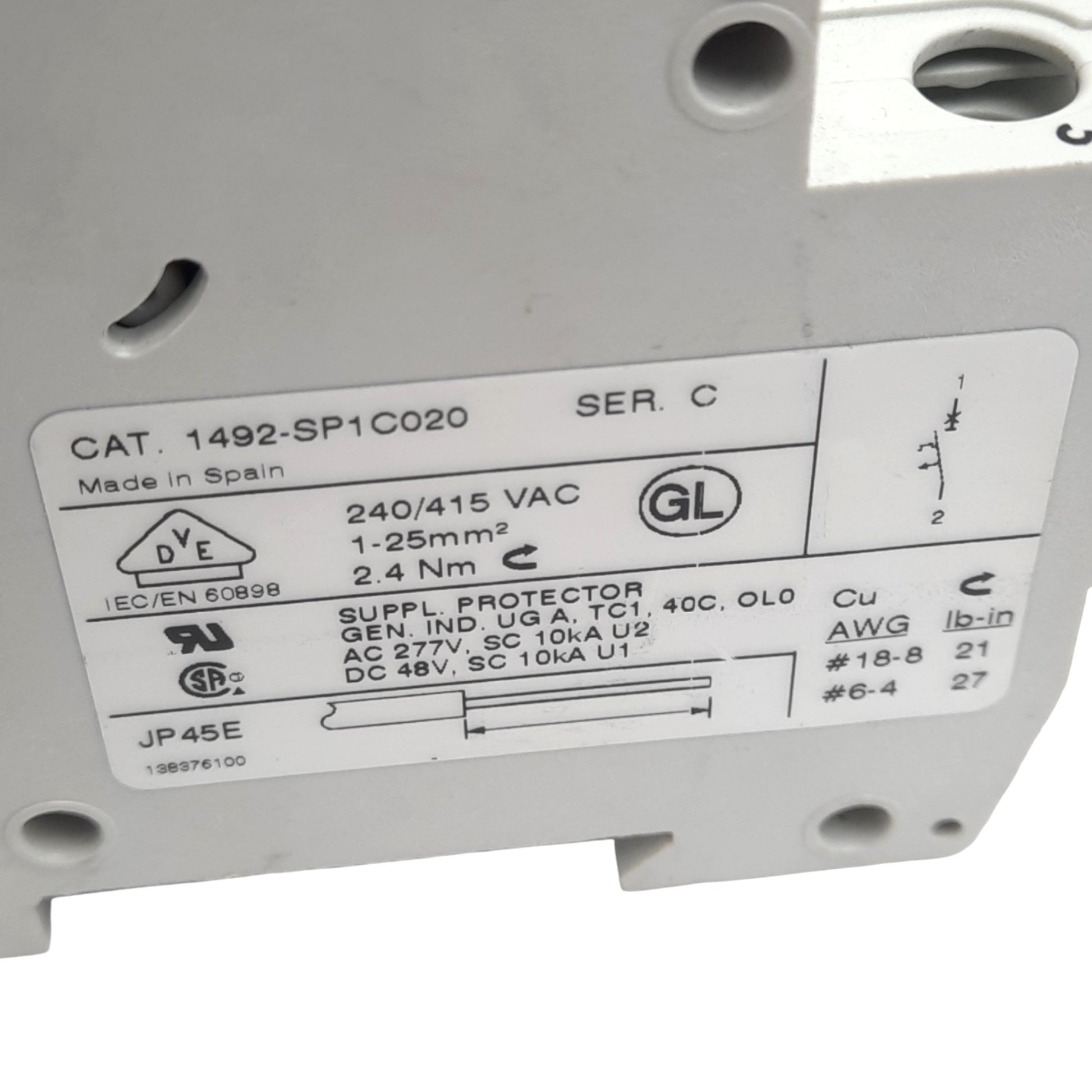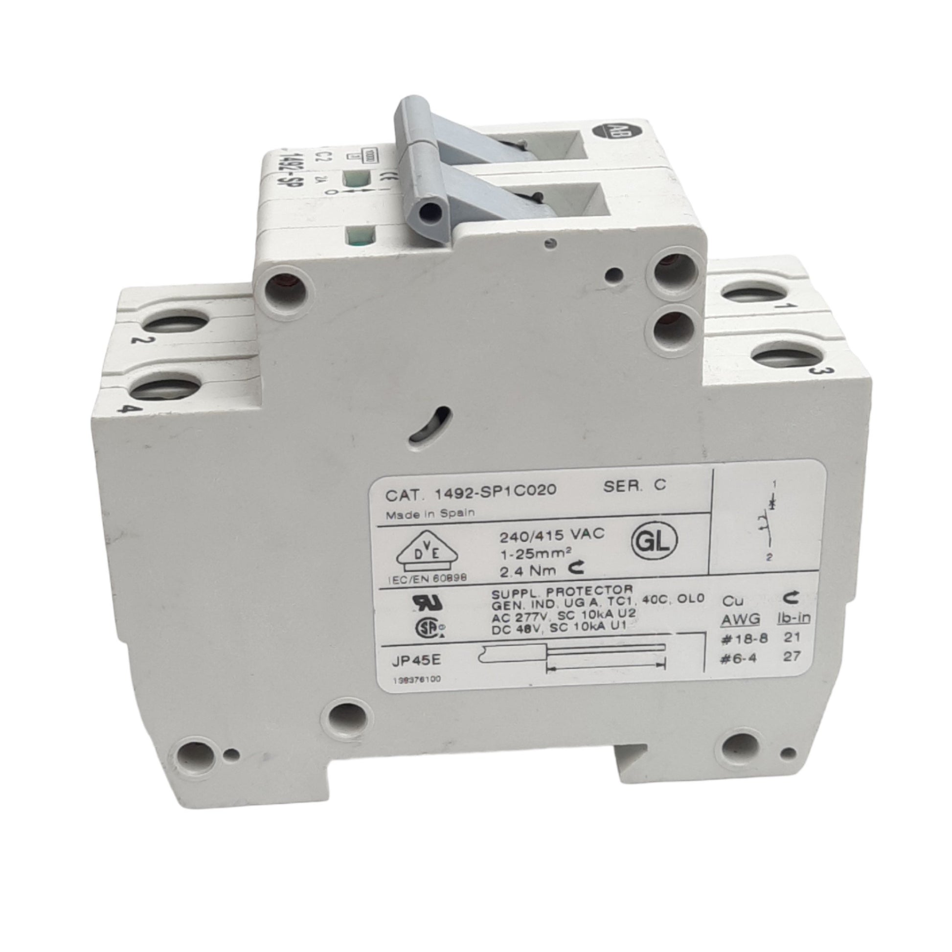 | Item Condition: Used SKU: SB-206250 RC-3-B>K From our inventory we are selling a Allen Bradley 1492-SP2C020 Circuit Breaker, 2-Pole, 2A, 480Y/277VAC, DIN Rail. Specifications: