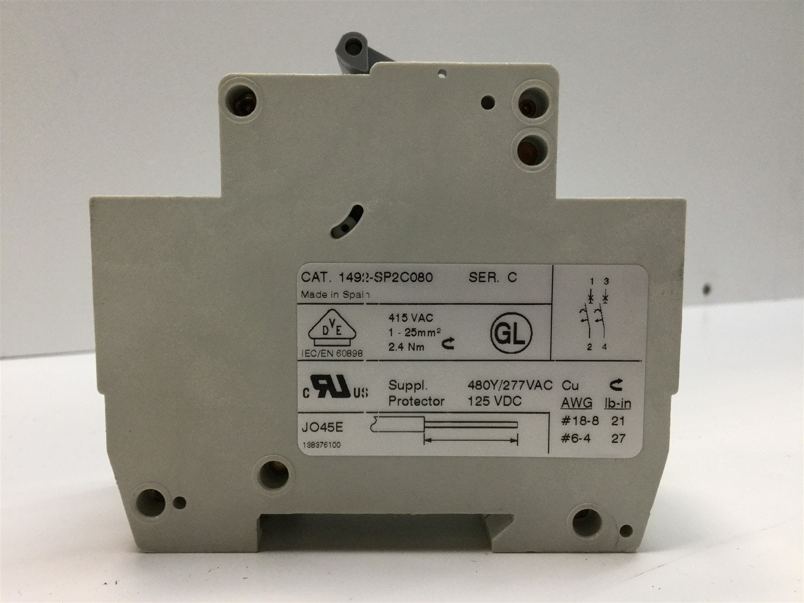 | Item Condition: Used SKU: SB-103301 ST11-1-C From our inventory we are selling a Allen Bradley 1492-SP2C080 Circuit Breaker, 2-Pole, 480Y/277VAC 125VDC 8A. Specifications:
