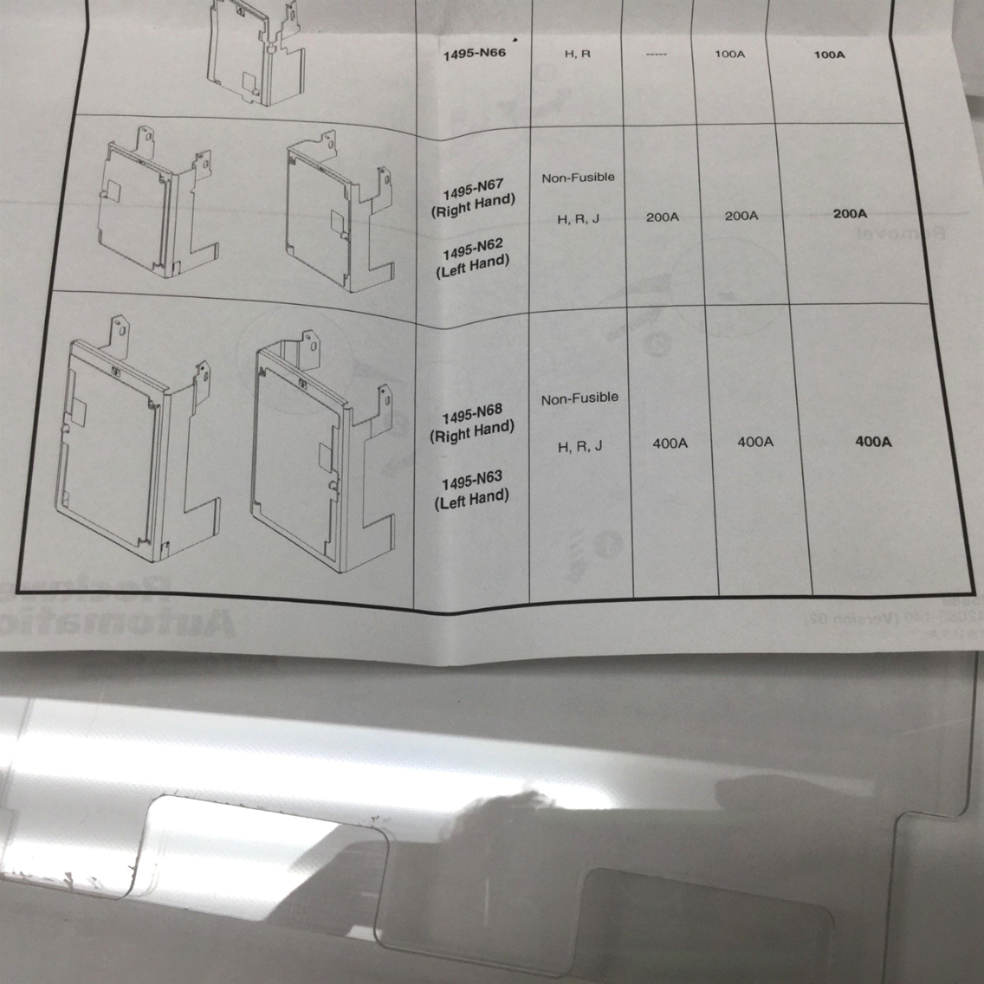 Used Allen Bradley 1495-N63 Disconnect Switch Fuse Cover 400A, w/ Door, Left-Hand