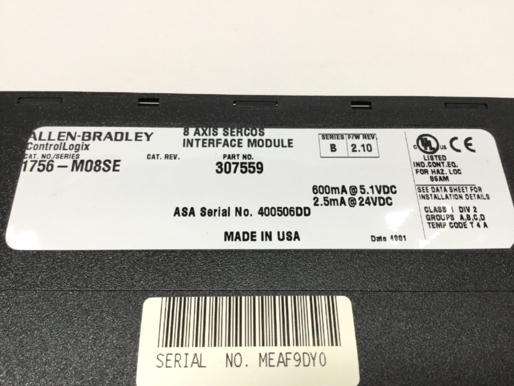 Used Allen Bradley 1756-M08SE ControlLogix 8-Axis Sercos Interface Motion Module