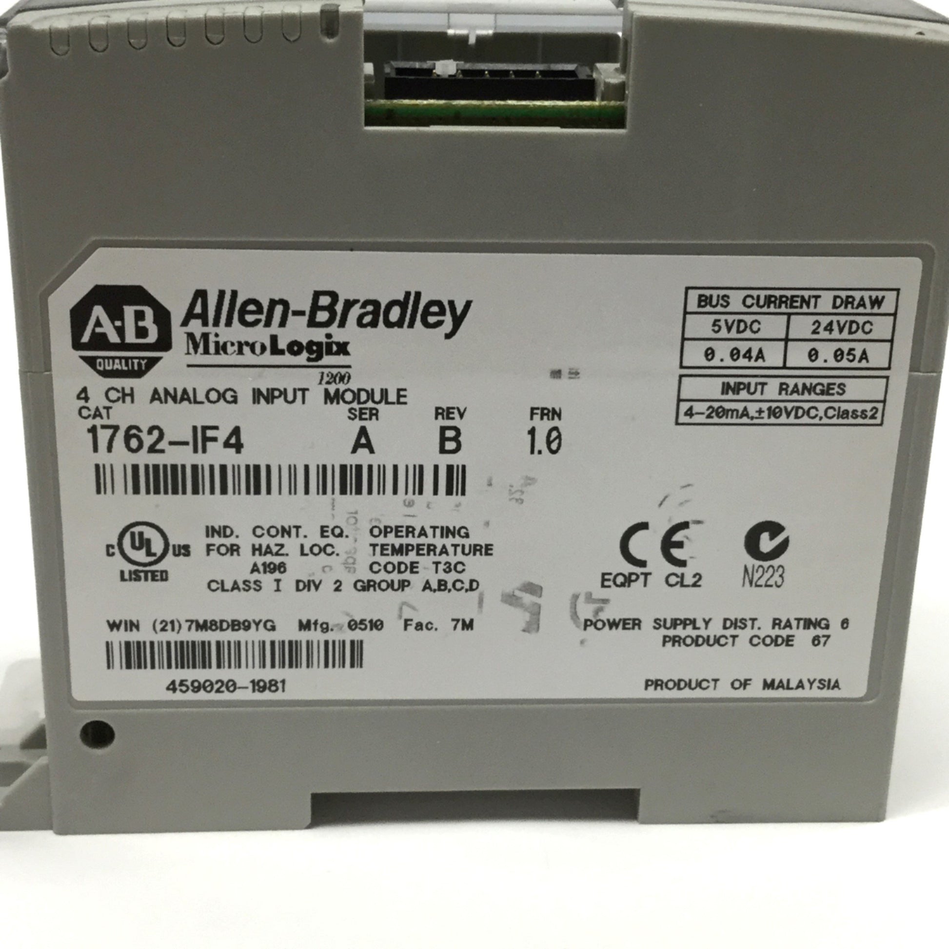 Used Allen Bradley 1762-IF4 MicroLogix Analog Input Module, 4-Channel, 4-20mA ±10VDC