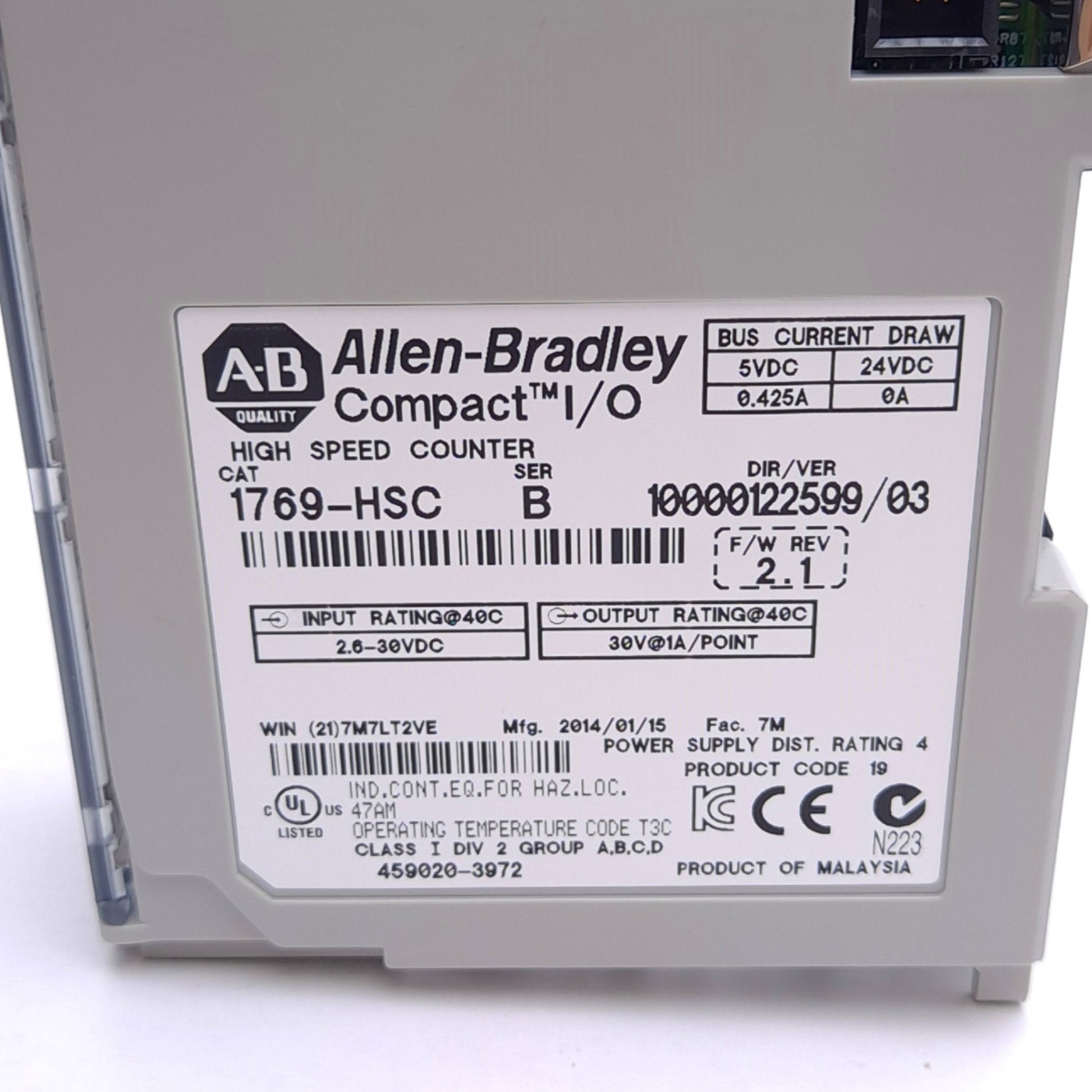 | Item Condition: Used SKU: SB-198945 ST57-4-B From our inventory we are selling a Allen Bradley 1769-HSC B CompactLogix High Speed Counter, 2-In 16-Out, 5-24VDC. Specifications: