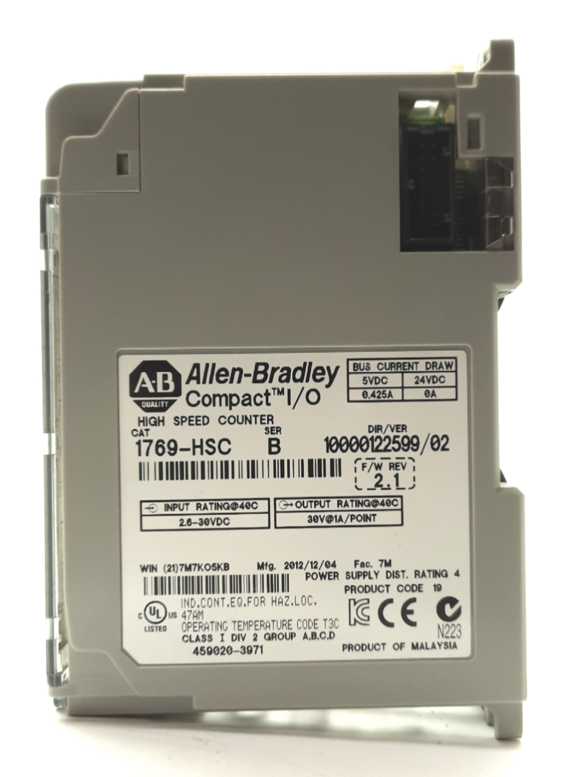 | Item Condition: Used SKU: SB-169021 ST54-4-A From our inventory we are selling a Allen Bradley 1769-HSC Ser B High Speed Counter I/O Module 2x 1MHz Inputs 4x Out. Specifications: