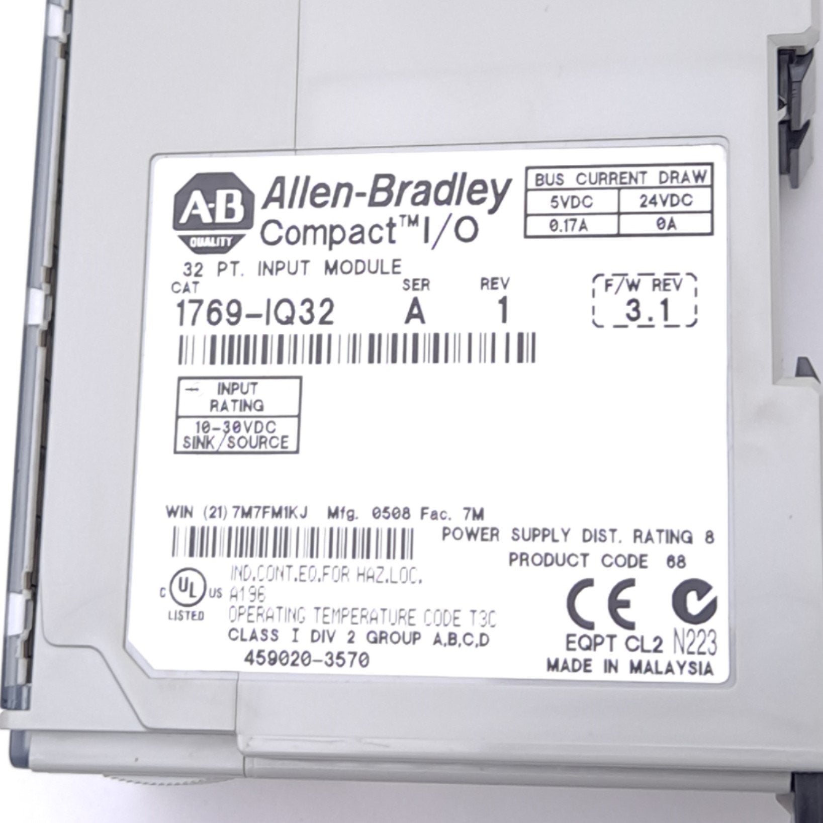Used Allen Bradley 1769-IQ32 Compact Input Module, Digital, 32-Point, 10-30VDC In