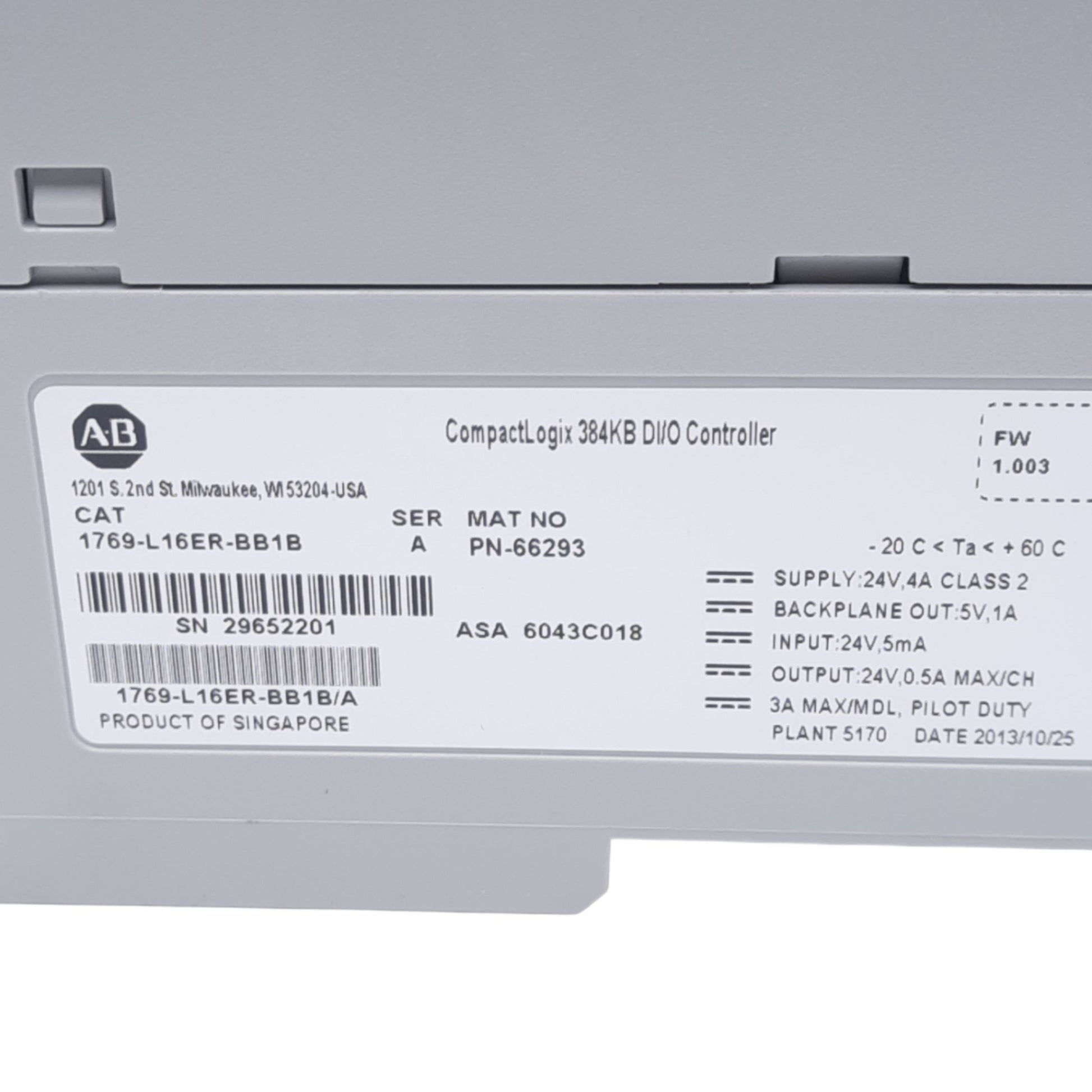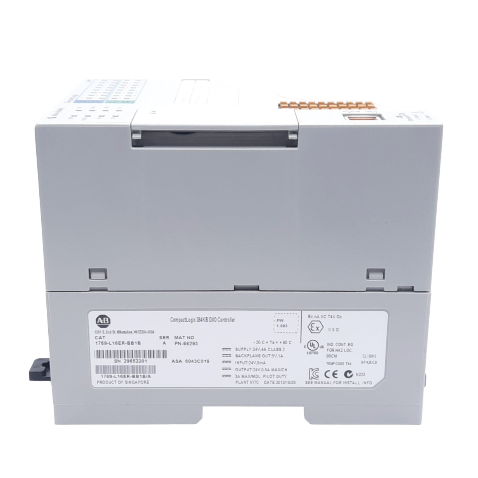 | Item Condition: Used SKU: SB-201664 ST69-4-A From our inventory we are selling a Allen Bradley 1769-L16ER-BB1B CompactLogix 5370 Controller, 32-Channel, 24VDC. Specifications: