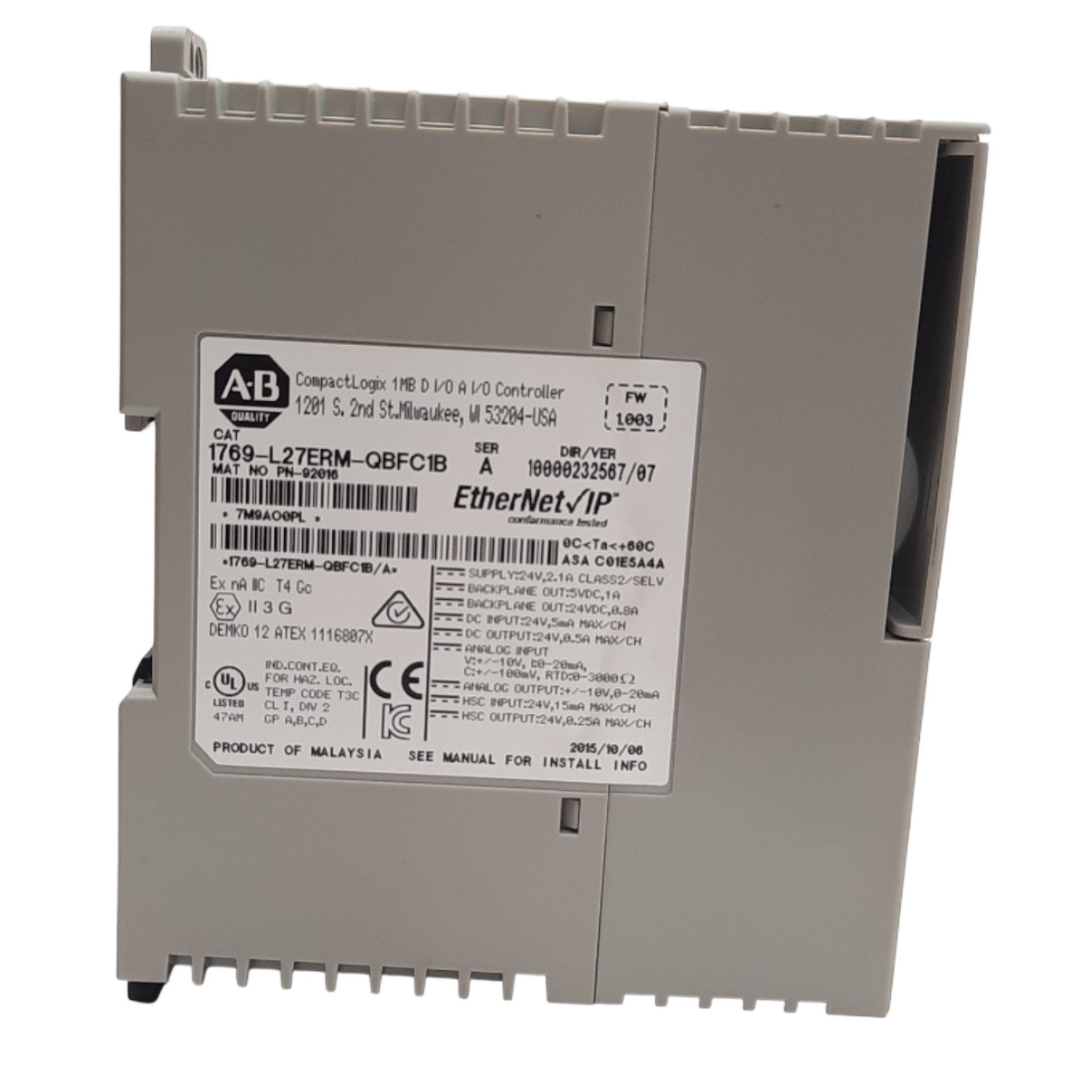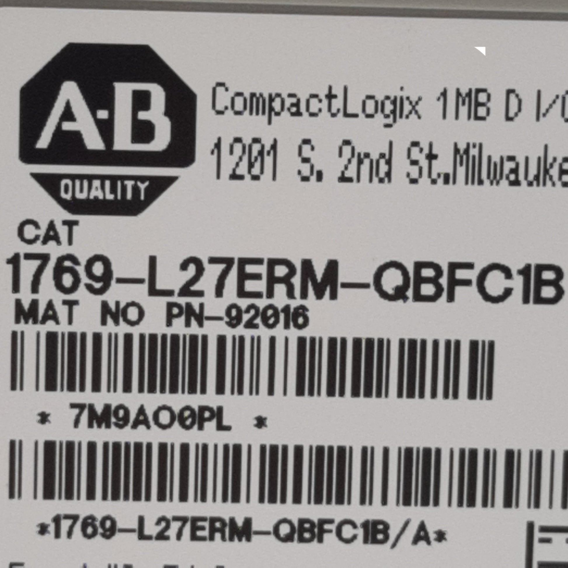 Used Allen Bradley 1769-L27ERM-QBFC1B CompactLogix 5370 Controller EtherNet/IP 24VDC