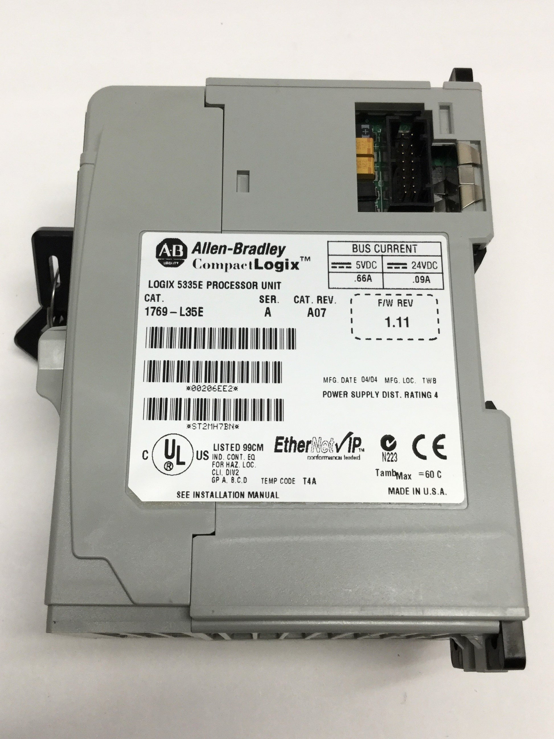 Used Allen Bradley 1769-L35E CompactLogix I/O 5335E Processor Unit CPU w/End Cap