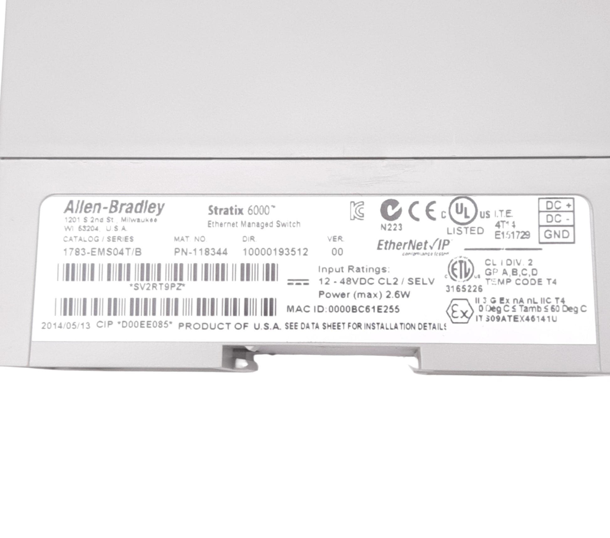 Used Allen Bradley 1783-EMS04T/B Ethernet Managed Switch, 4-Port RJ45, 12-48VDC
