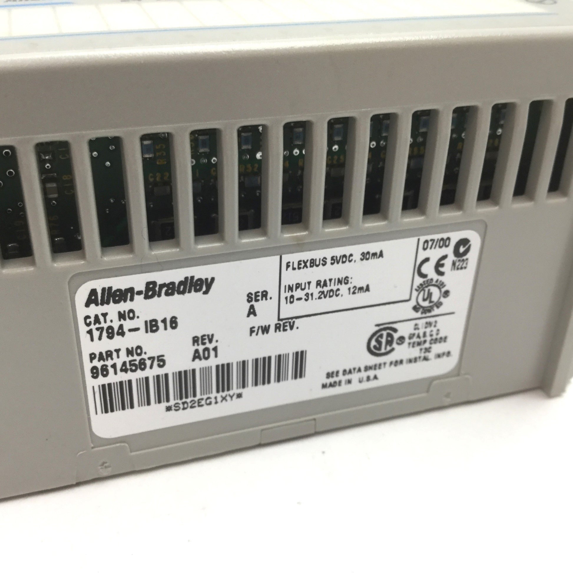 | Item Condition: Used SKU: SB-137176 ST5-1-C From our inventory we are selling a Allen Bradley 1794-IB16 Input Module, 16-Digital, With 1794-TB3 Terminal Base. Specifications: