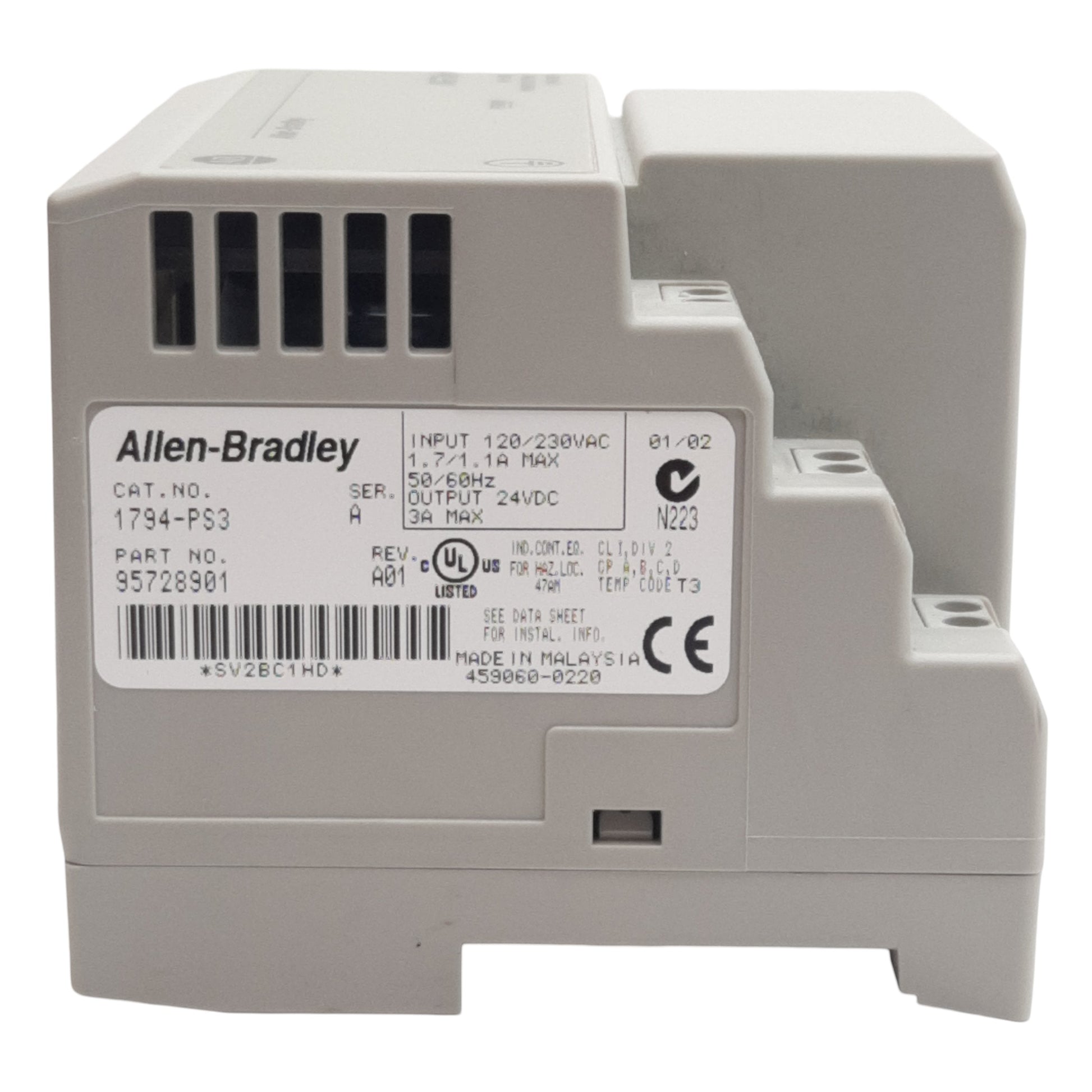 | Item Condition: Used SKU: SB-200175 ST34-1-K From our inventory we are selling a Allen Bradley 1794-PS3 Flex I/O Power Supply, 3A 24VDC Out, 120/230VAC In. Specifications: