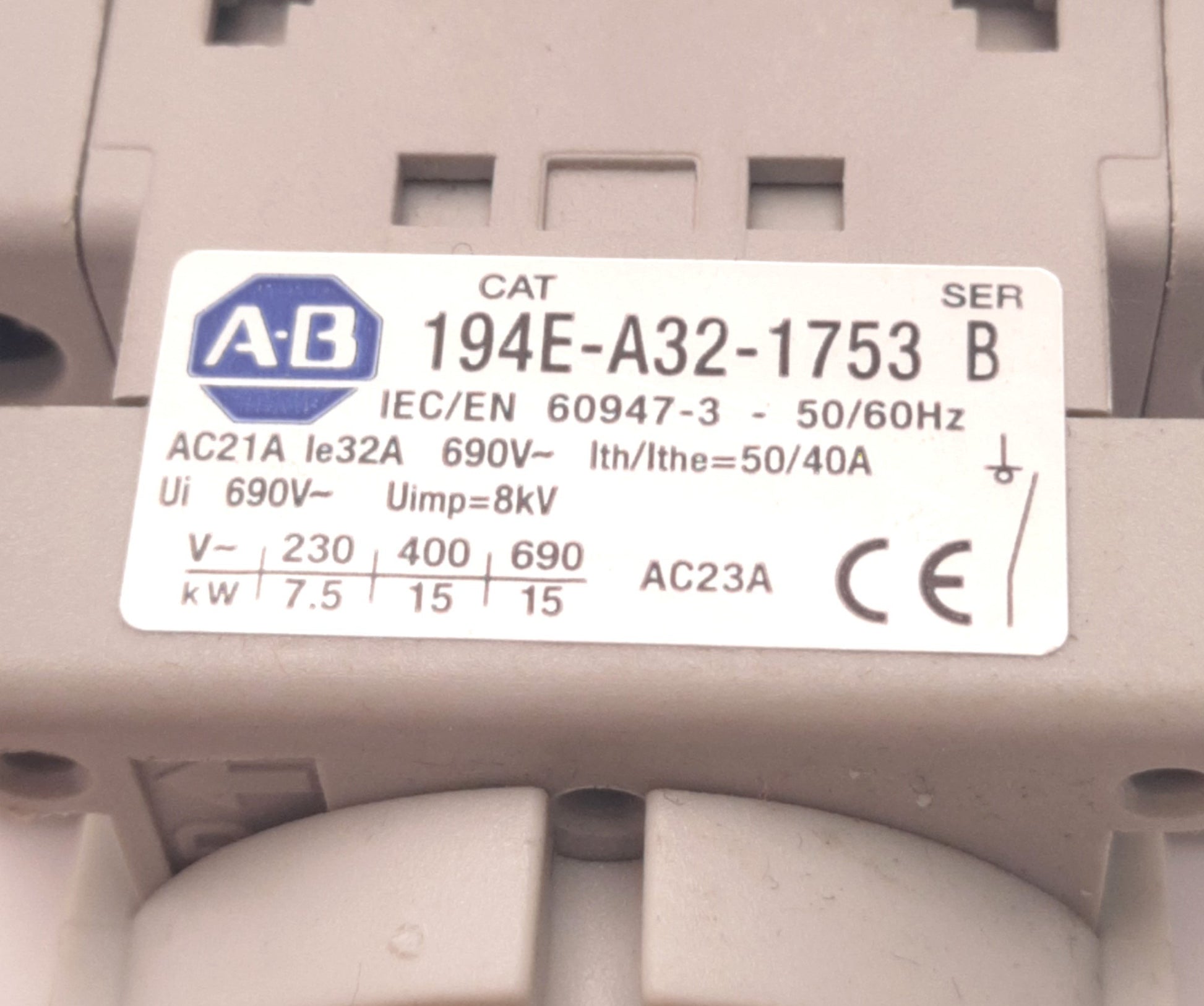 | Item Condition: Used SKU: SB-166441 ST32-5-F From our inventory we are selling a Allen Bradley 194E-A32-1753 B Disconnect Switch 32A, 600VAC, 3 Pole, 6-3/8" Post. Specifications: