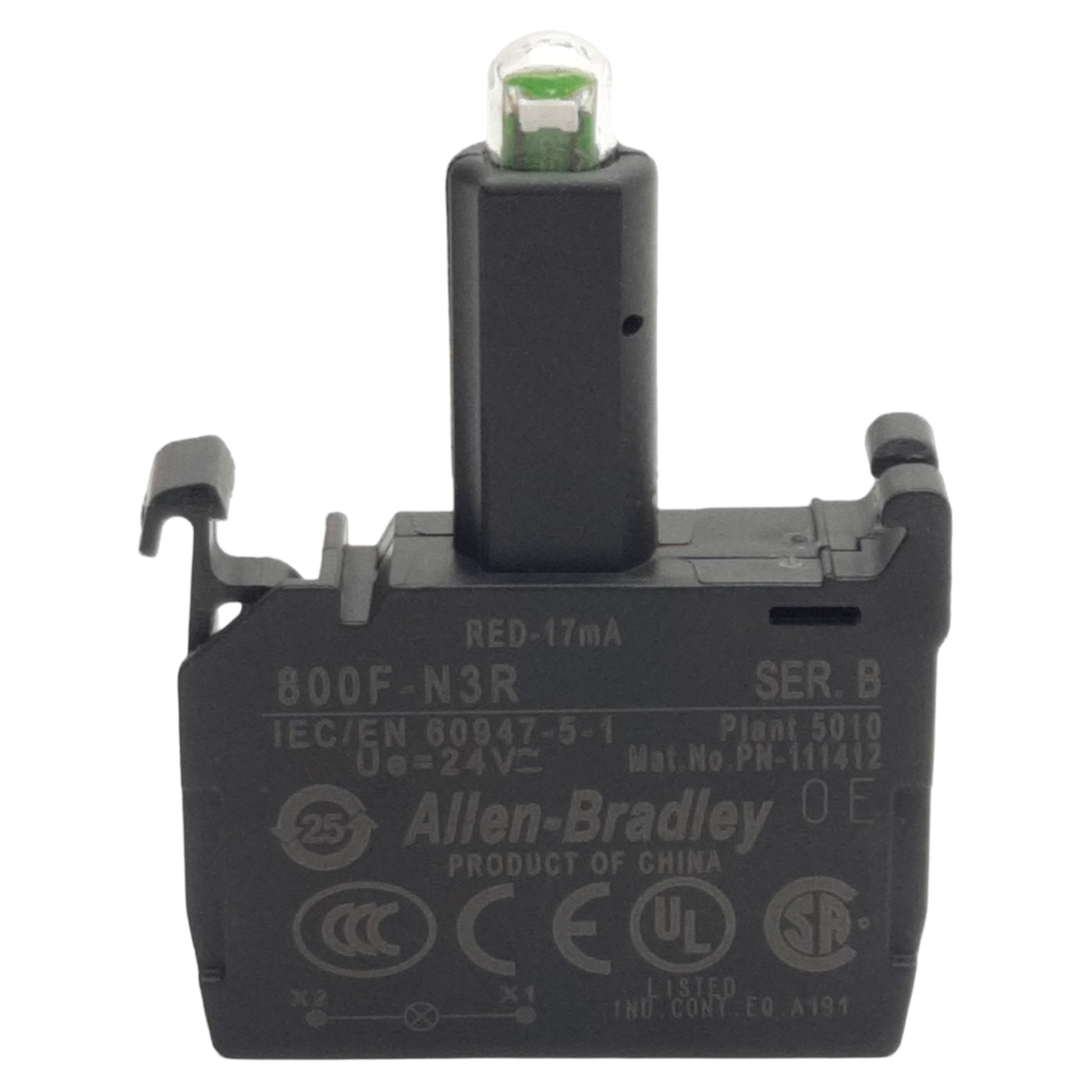 Used Allen Bradley 800F-N3R LED Module, Red 17mA, 24VAC/VDC, 22mm, Latch Mount