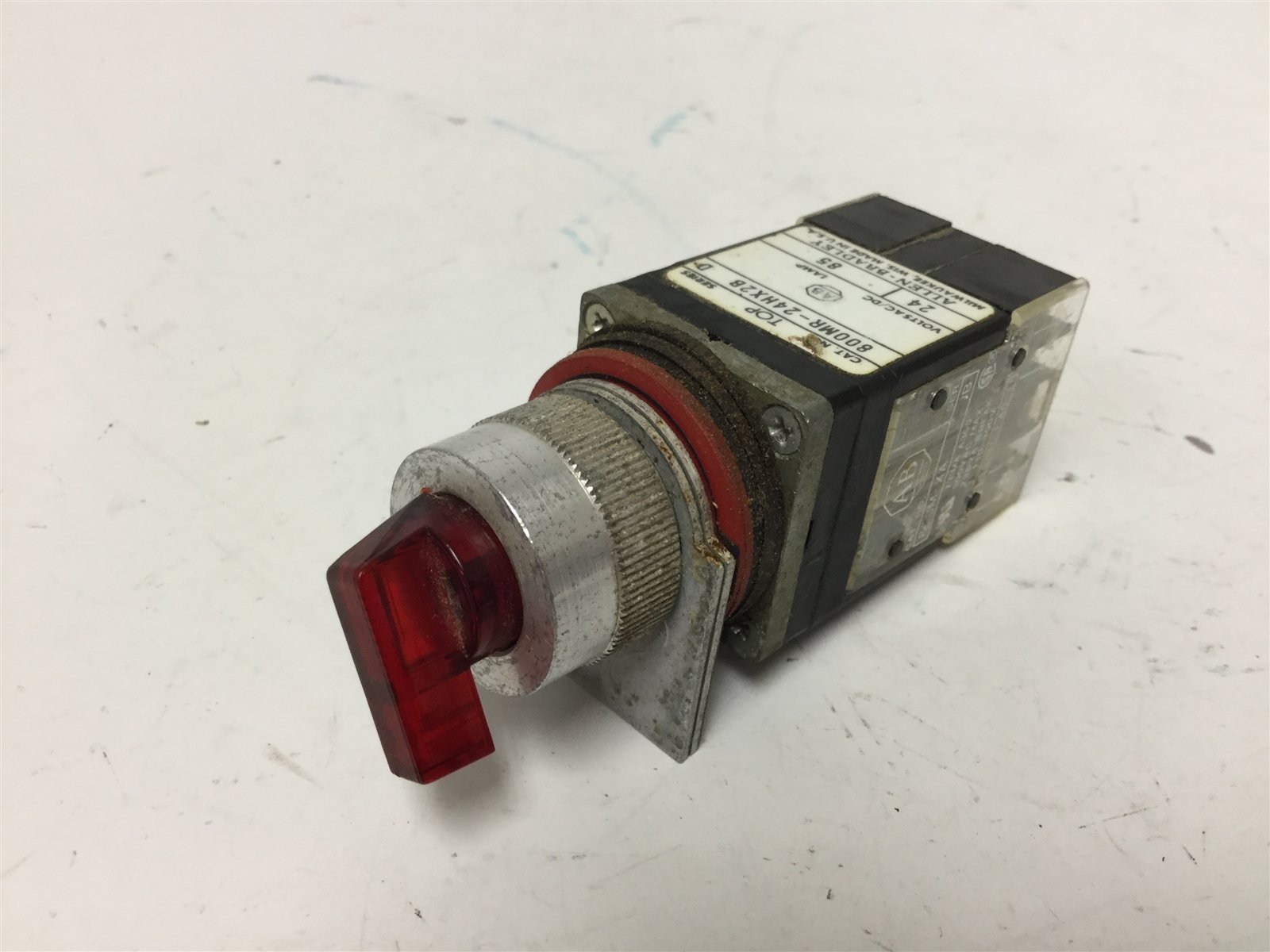 Used Allen Bradley 800MR-24HX2B Red Lighted Selector Switch, With 800M-XA Contacts