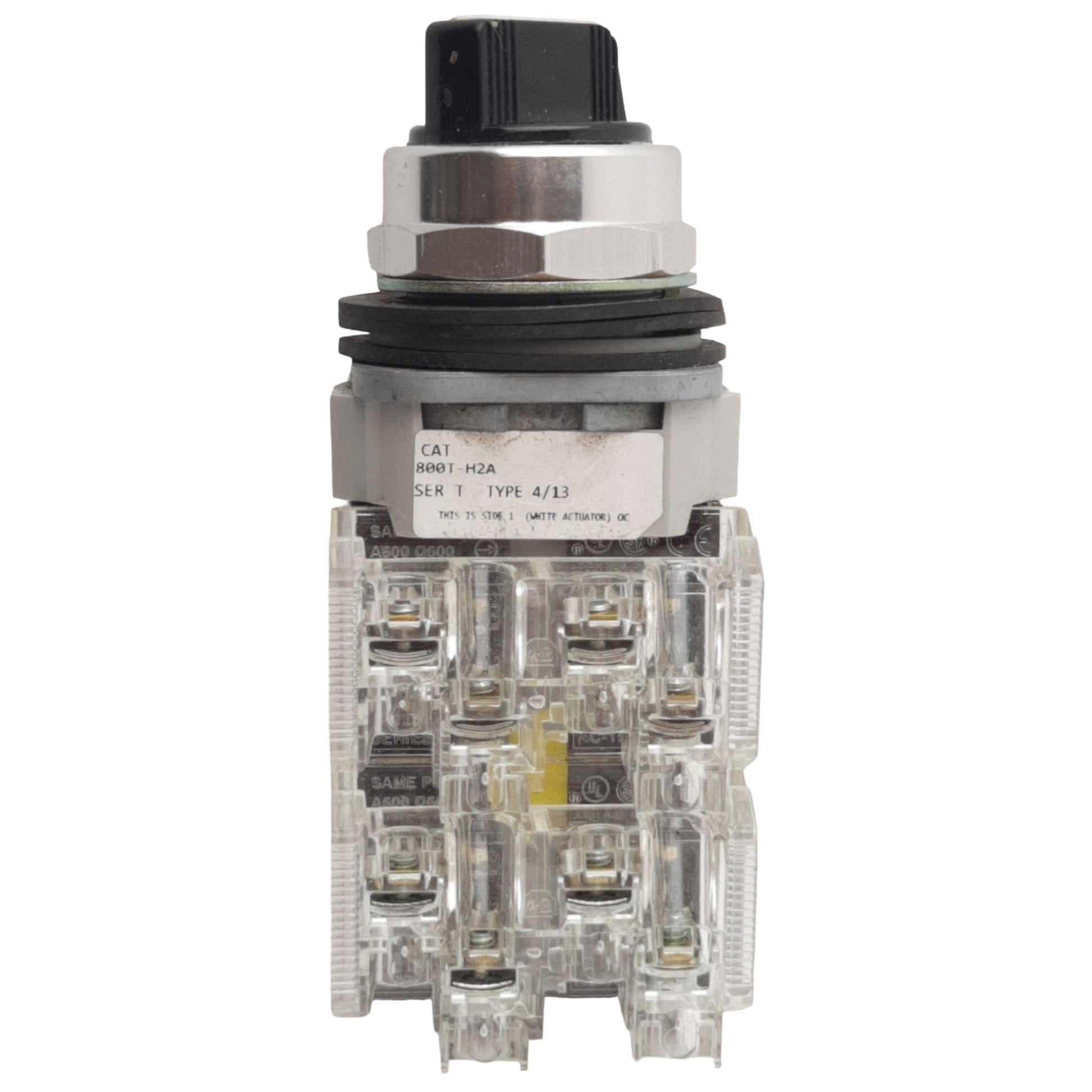 Used Allen Bradley 800T-H2A Maintained Selector Switch, 2-Pos, 2N/O -2N/C, 600VAC 10A