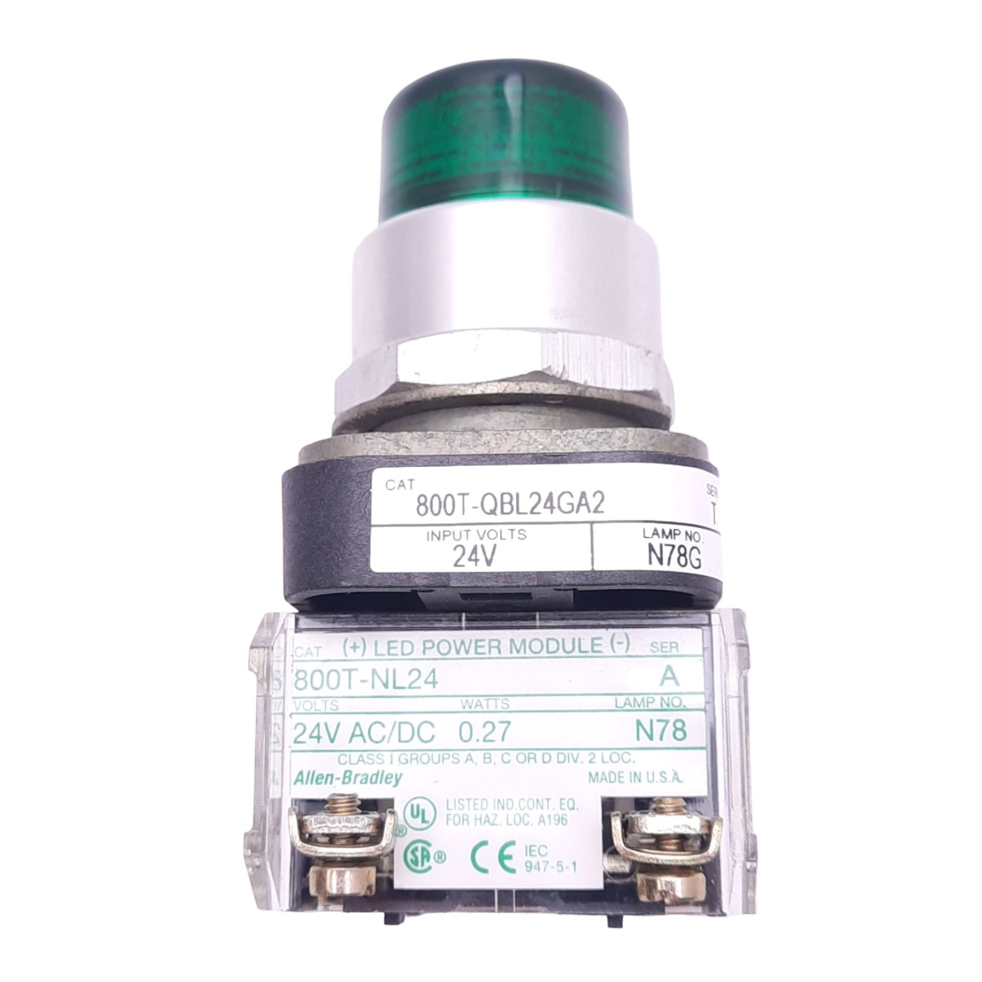 Used Allen Bradley 800T-QBL24GA2 Green Illuminated Pushbutton, ø30mm, 2NO, 600V Max