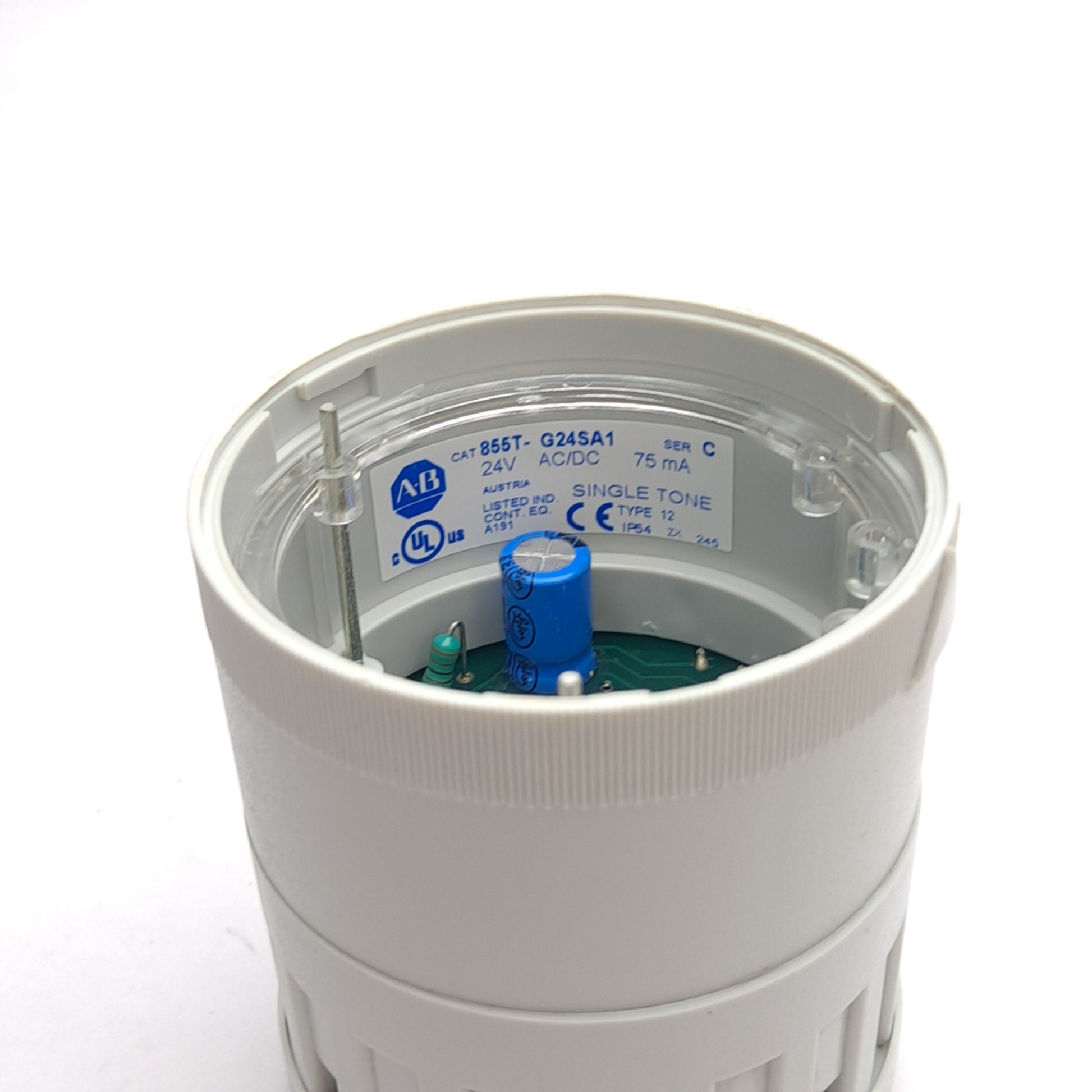 Used Allen Bradley 855T-G24SA1 Single Tone Sound Module, 24V AC/DC 75mA