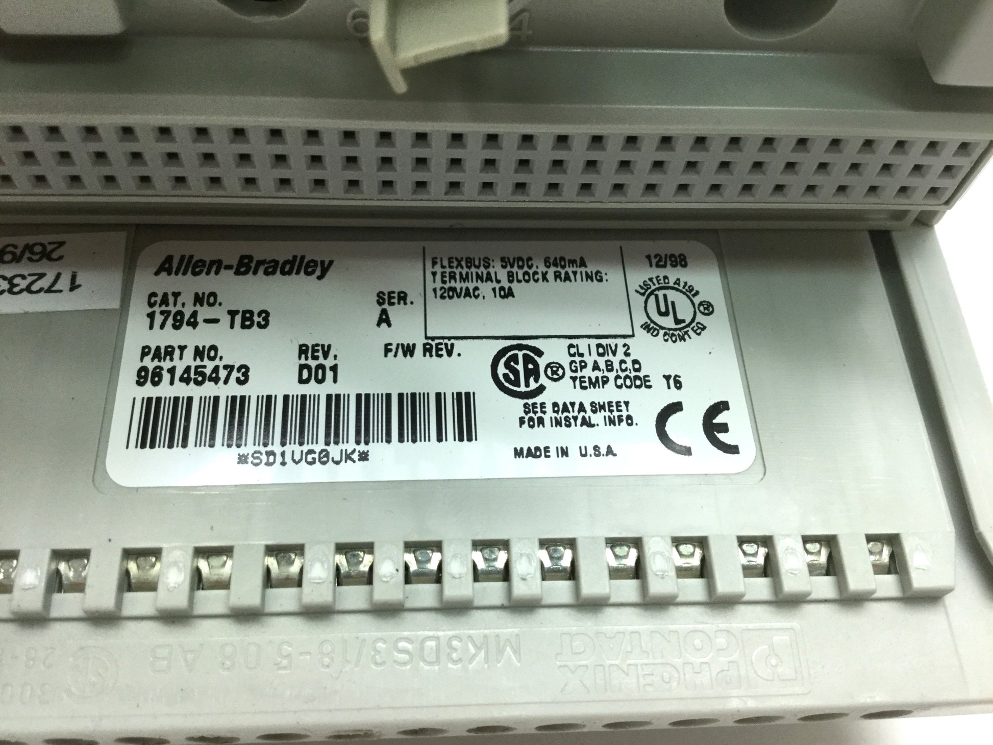 Used Allen Bradley Flex I/O Input Module 16-Ch 1794-IV16 W/ 1794-TB3 Terminal Base