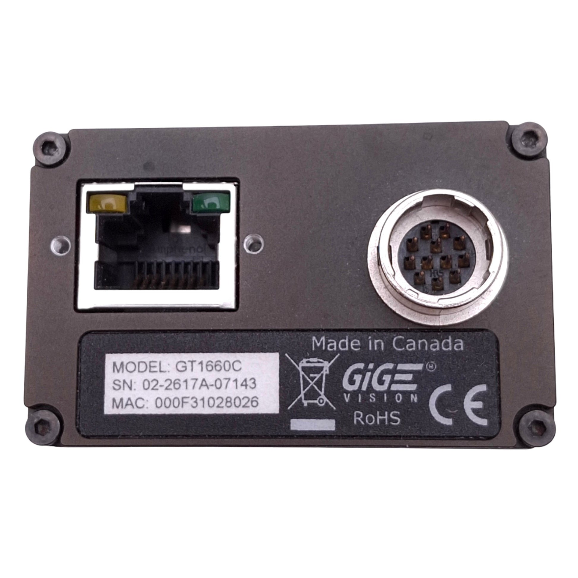 Used Allied Vision Prosilica GT1660C GigE 2MP CCD Camera, 2/3", 1600x1200, 62.1fps