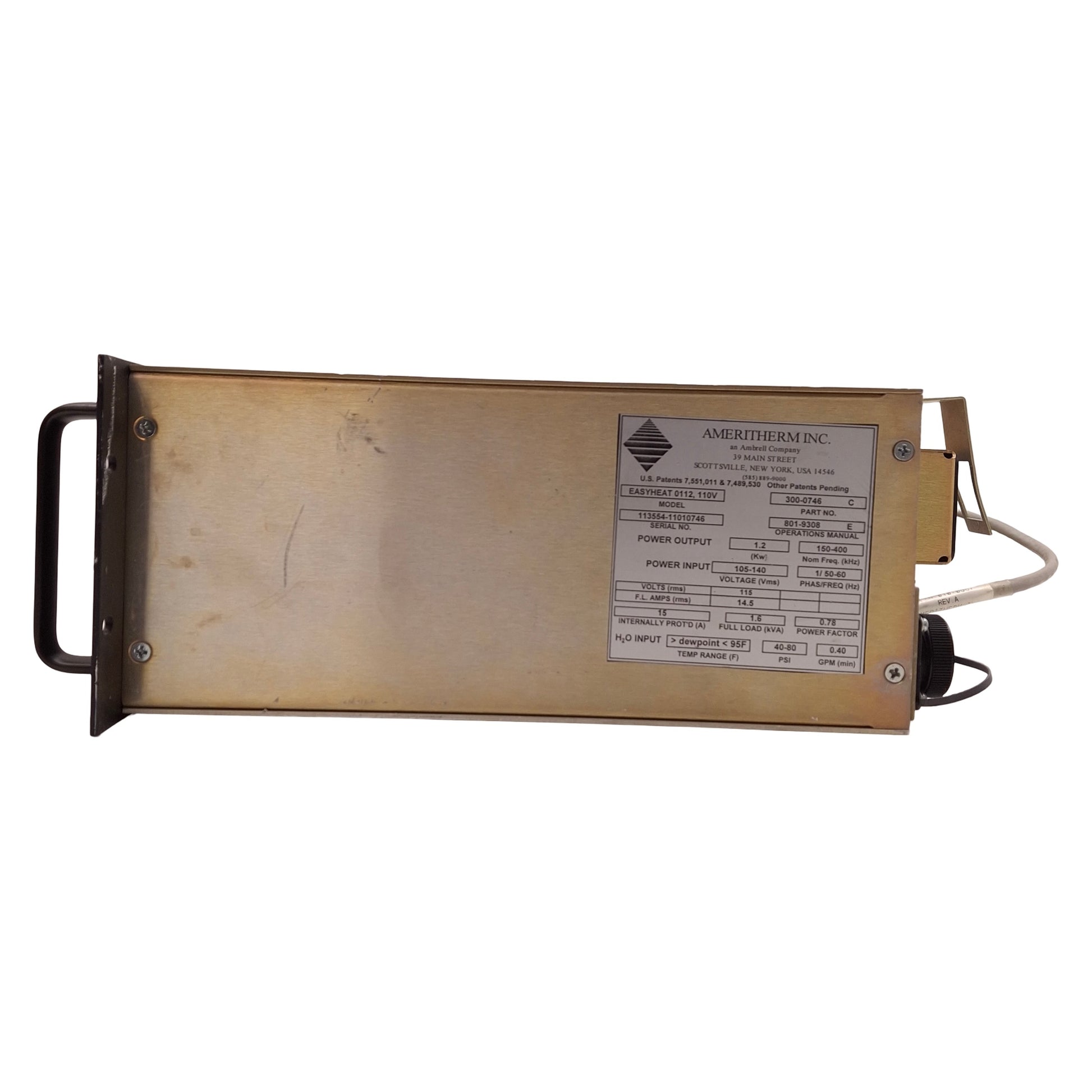 Used Ameritherm EasyHeat 0112 Induction Heating System 105-140Vac, 45°C Max, 5.6 Bar