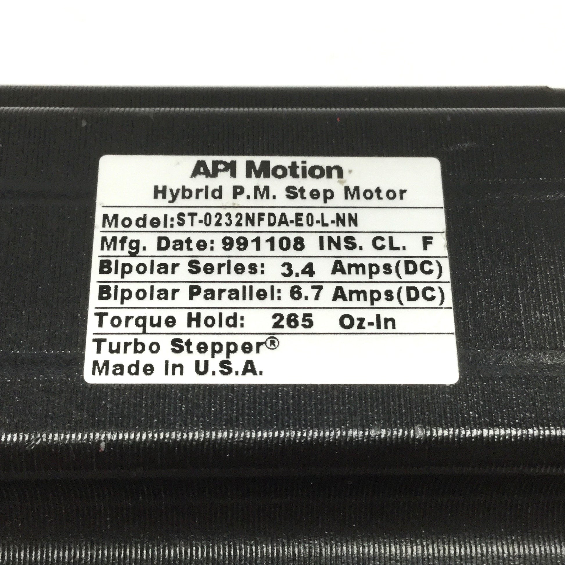 Used API Motion ST-0232NFDA-E0-L-NN Turbo Stepper Hybrid PM Motor 265oz-in, NEMA 23