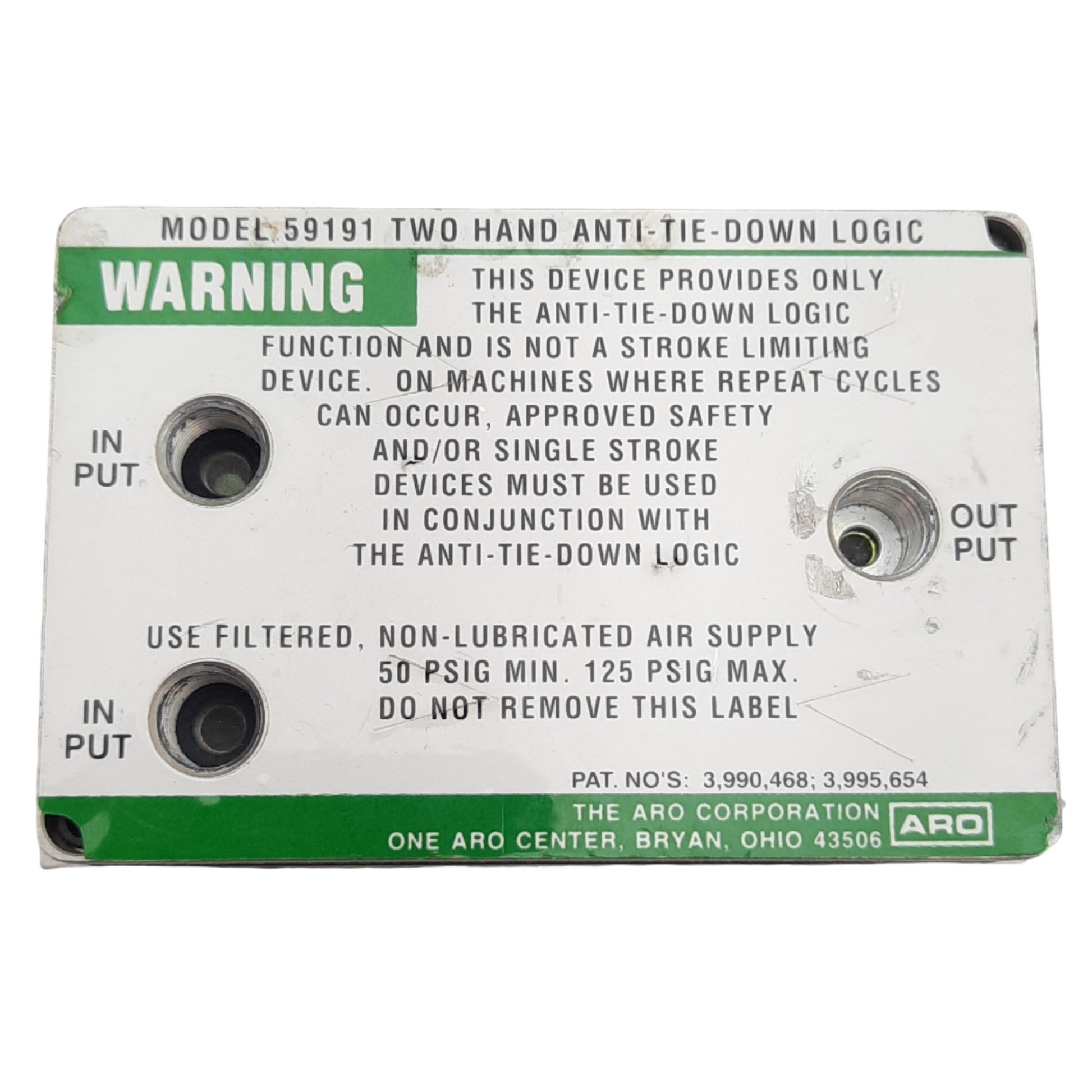 Used ARO 59191 Two Hand Anti-Tie-Down Logic 4scfm Flow, 1/8in NPT, 50-125PSIG