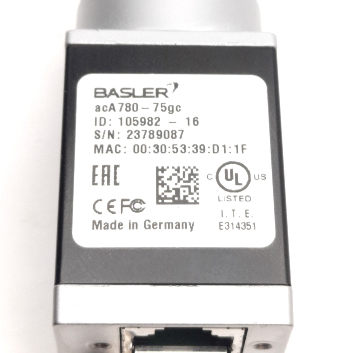 Used Balser ACA780-75FC Ace GigE Camera, 1/2" CCD, 780x580, C/CS-Mount *Connector*