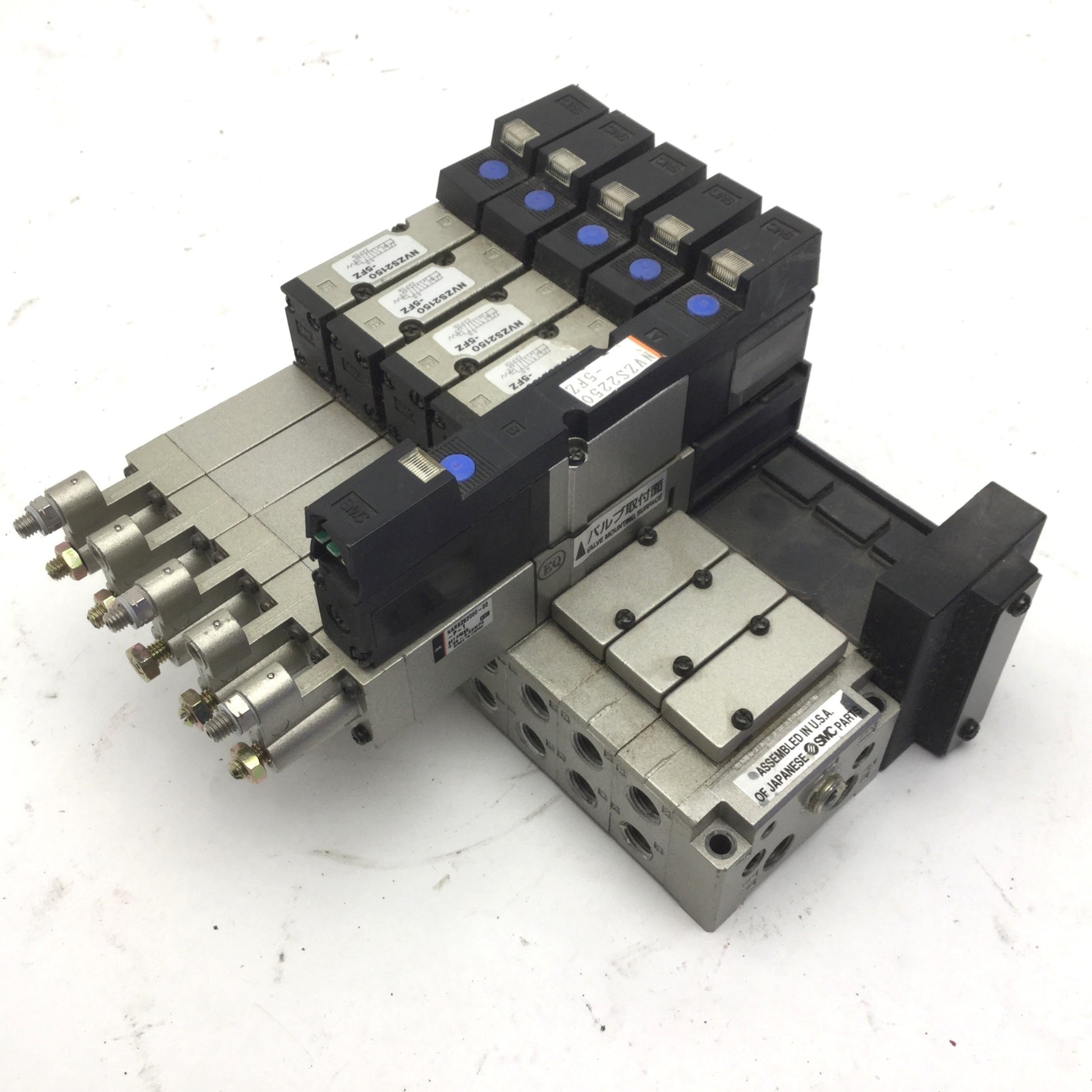 | Item Condition: Used SKU: SB-147891 NF-2-A From our online store inventory, we are selling an Bank of 5 SMC Solenoid Valves 4x NVZS2150-5FZ, NVZS2250-5FZ 5x NARBZS2000-00-P-1. Specifications: