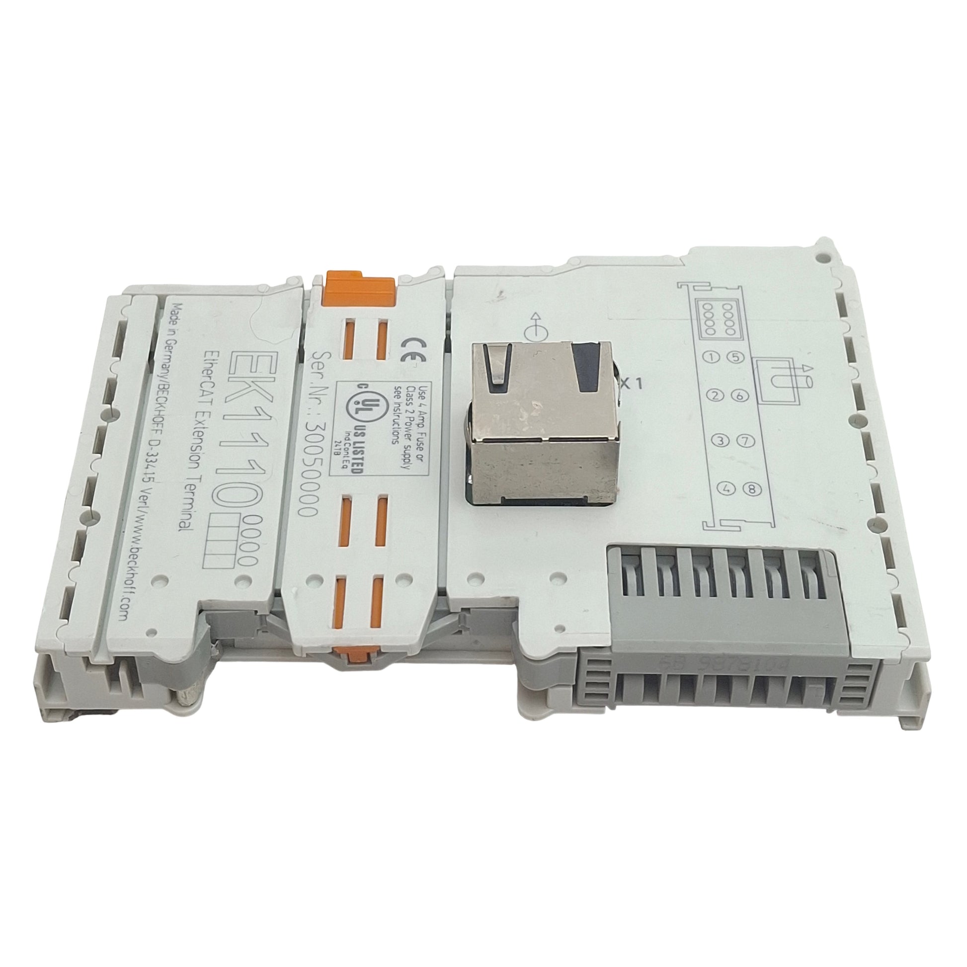 Used Beckhoff EK1110 EtherCAT Extension Terminal, 100 Mbit/s, RJ45 *w/out Cover*