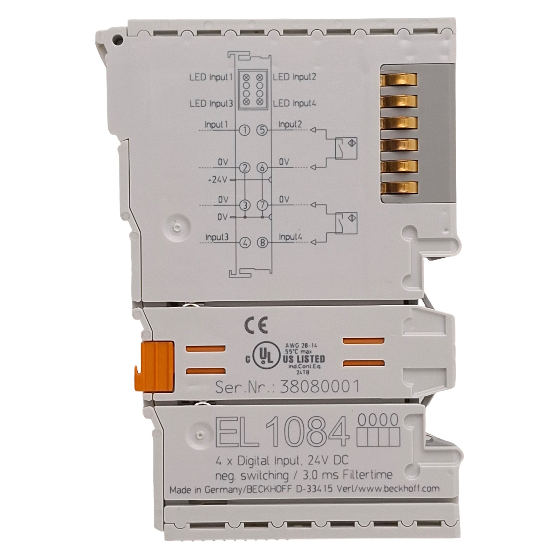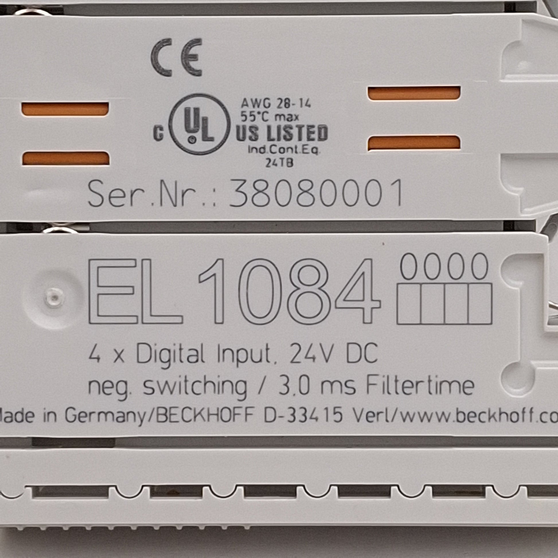 Used Beckhoff EL1084 EtherCAT Terminal, 4-Channel Digital Input, 3ms Filter, 24VDC