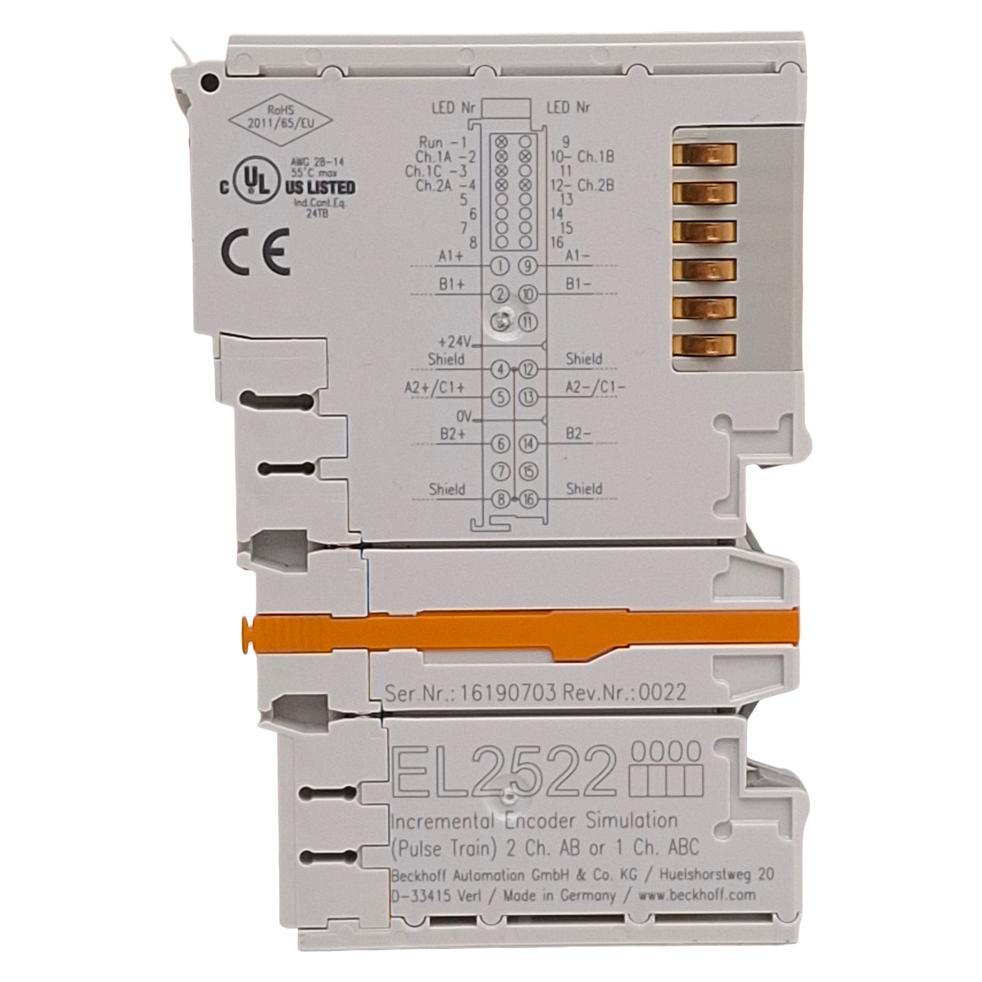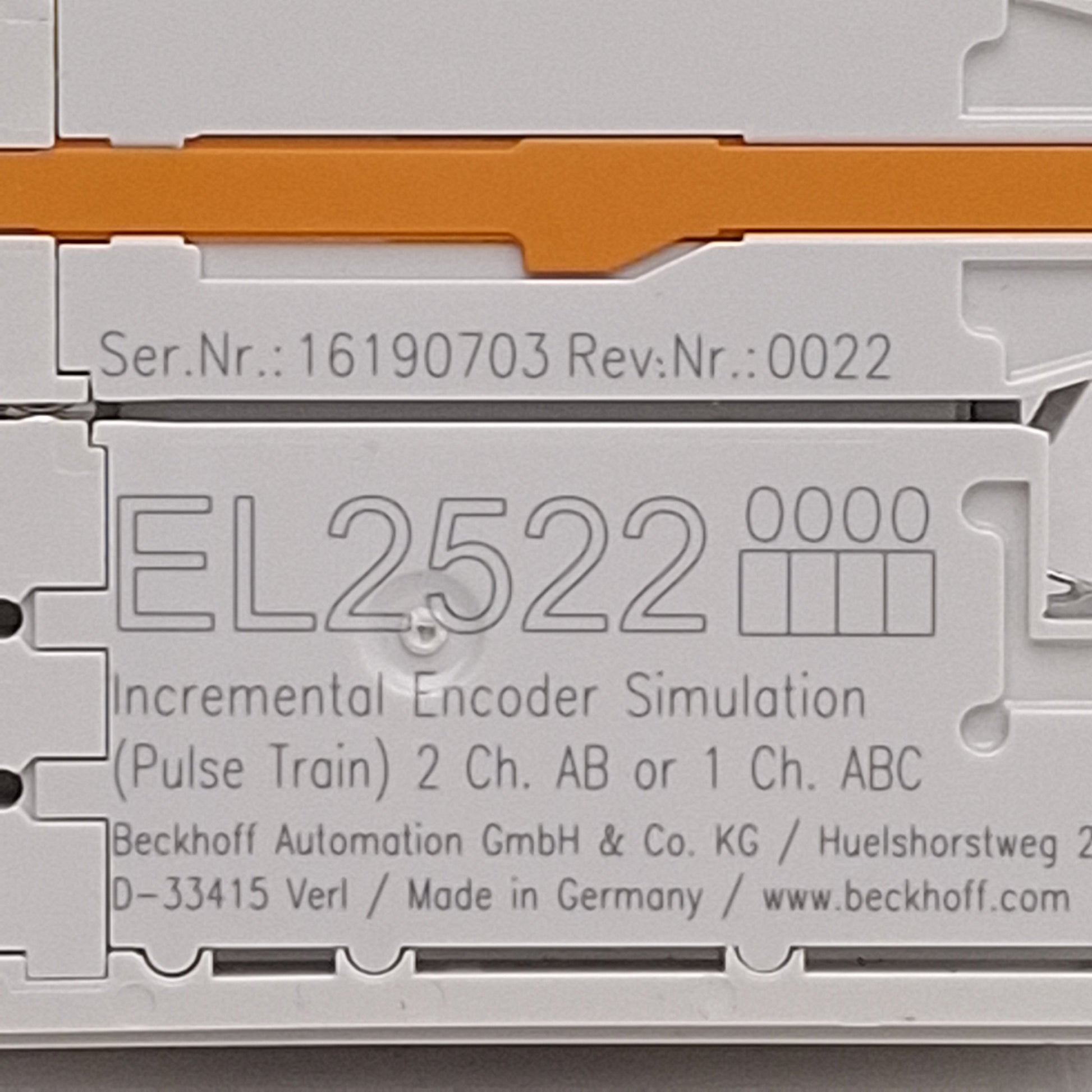 Used Beckhoff EL2522 EtherCAT Terminal, 2-Channel Incremental Encoder Simulation