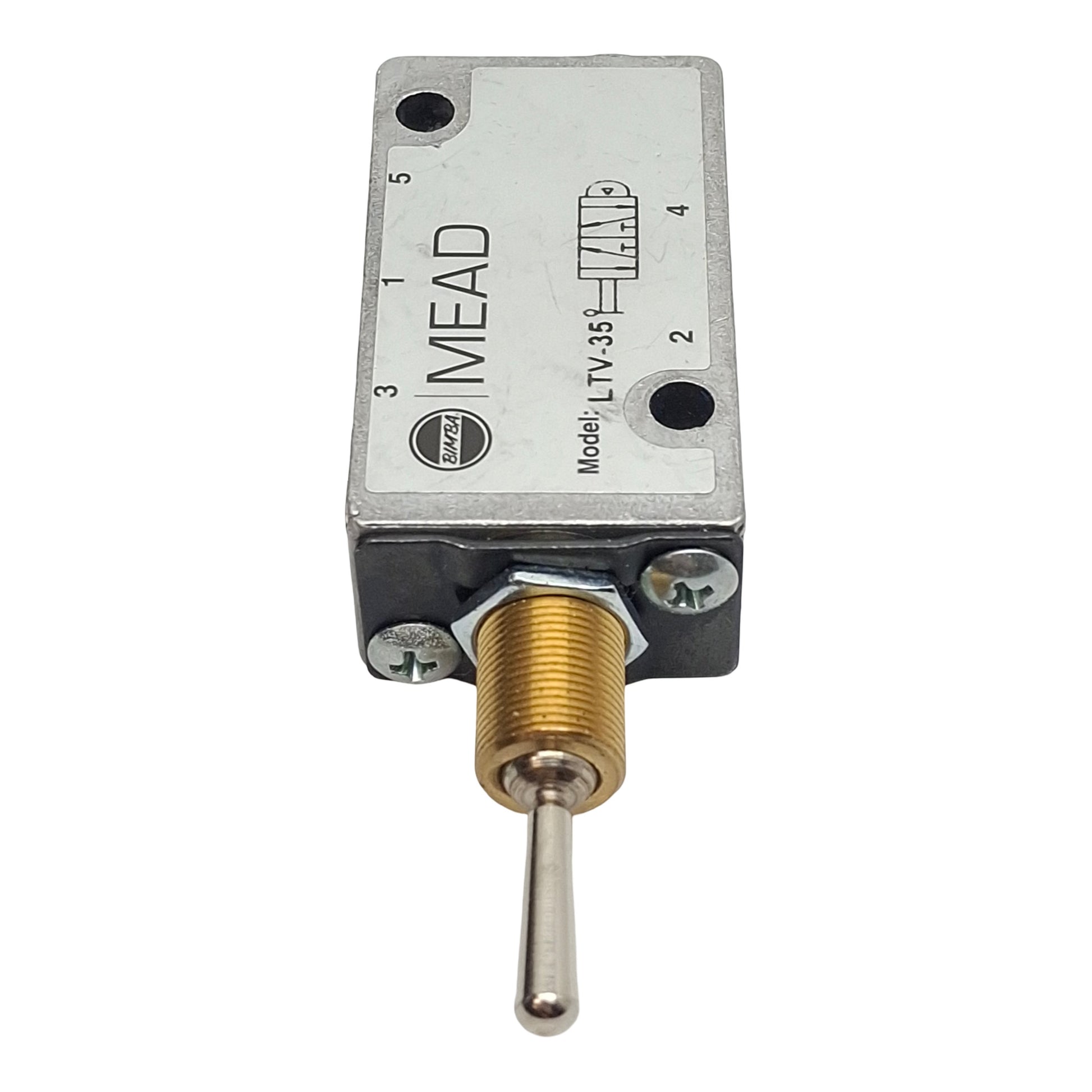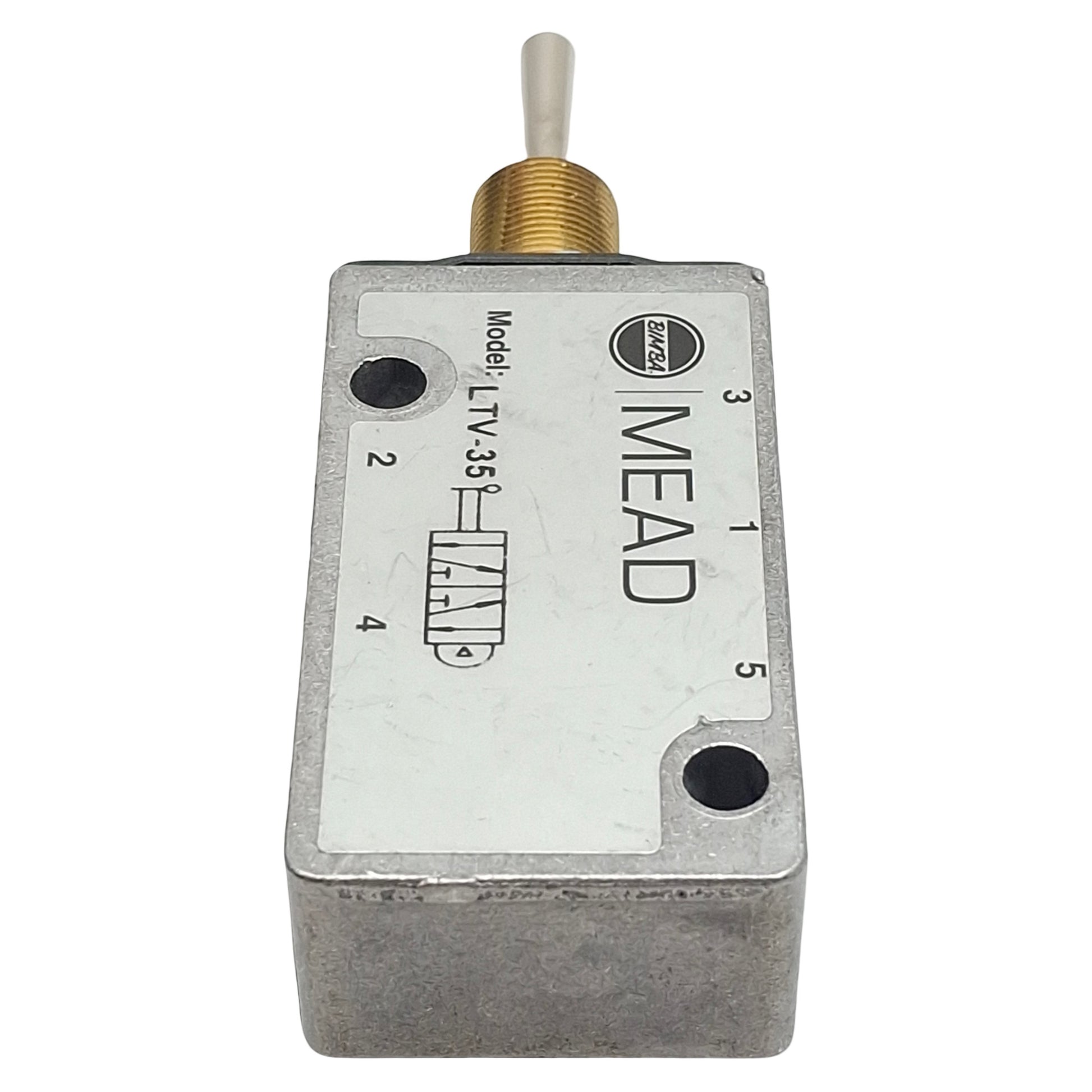 Used Bimba Mead LTV-35 Toggle Control Valve, 5/4-Way, 1/8in NPT, 25-125psi, 0.18Cv