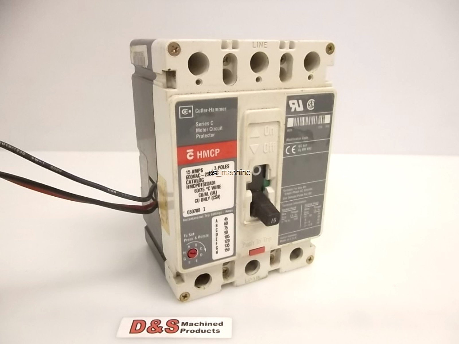 Used CH Cutler-Hammer HMCP015E0A01 Circuit Breaker 15 Amps, 3 Poles, 600VAC-250VDC