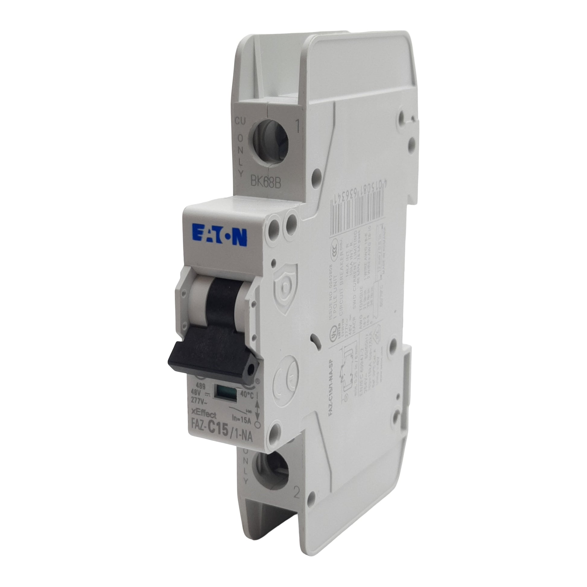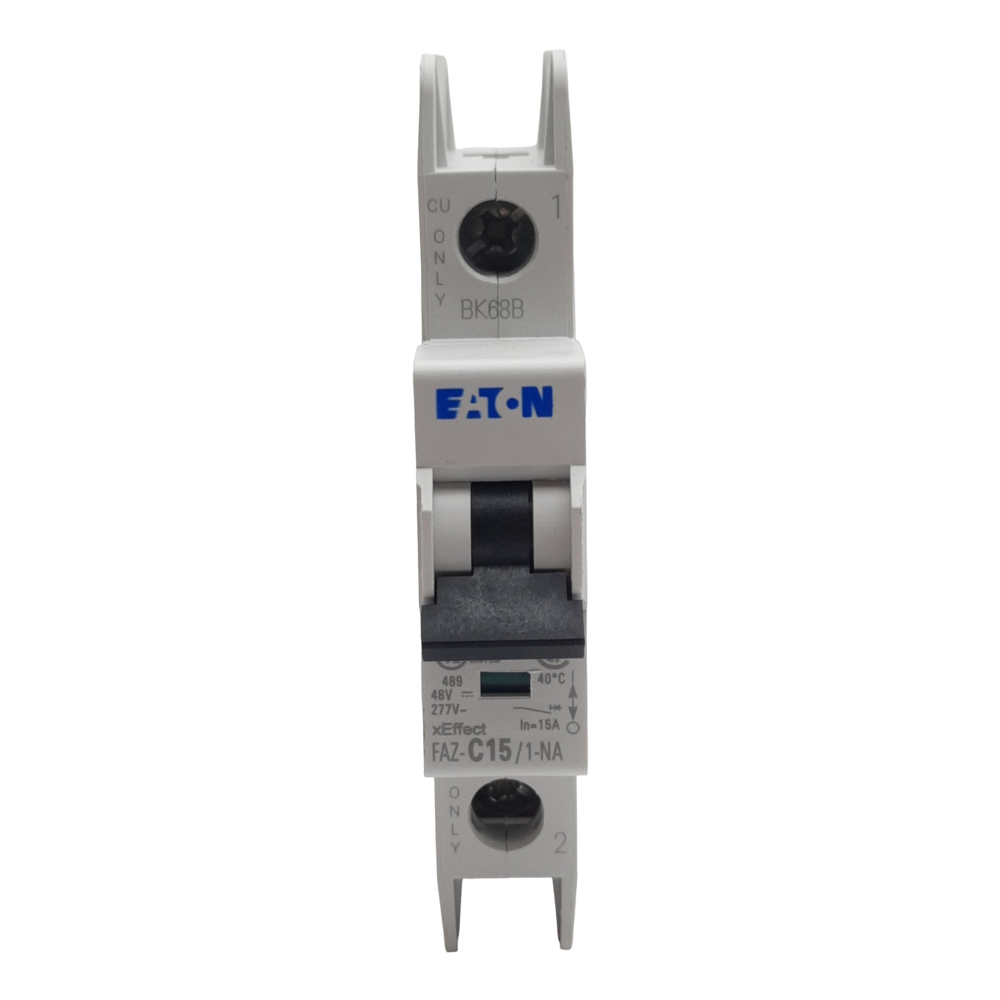Used chunkEaton FAZ-C15/1-NA-L-SP Circuit Breaker, 1-Pole, 15A 277VAC/48VDC, DIN Rail