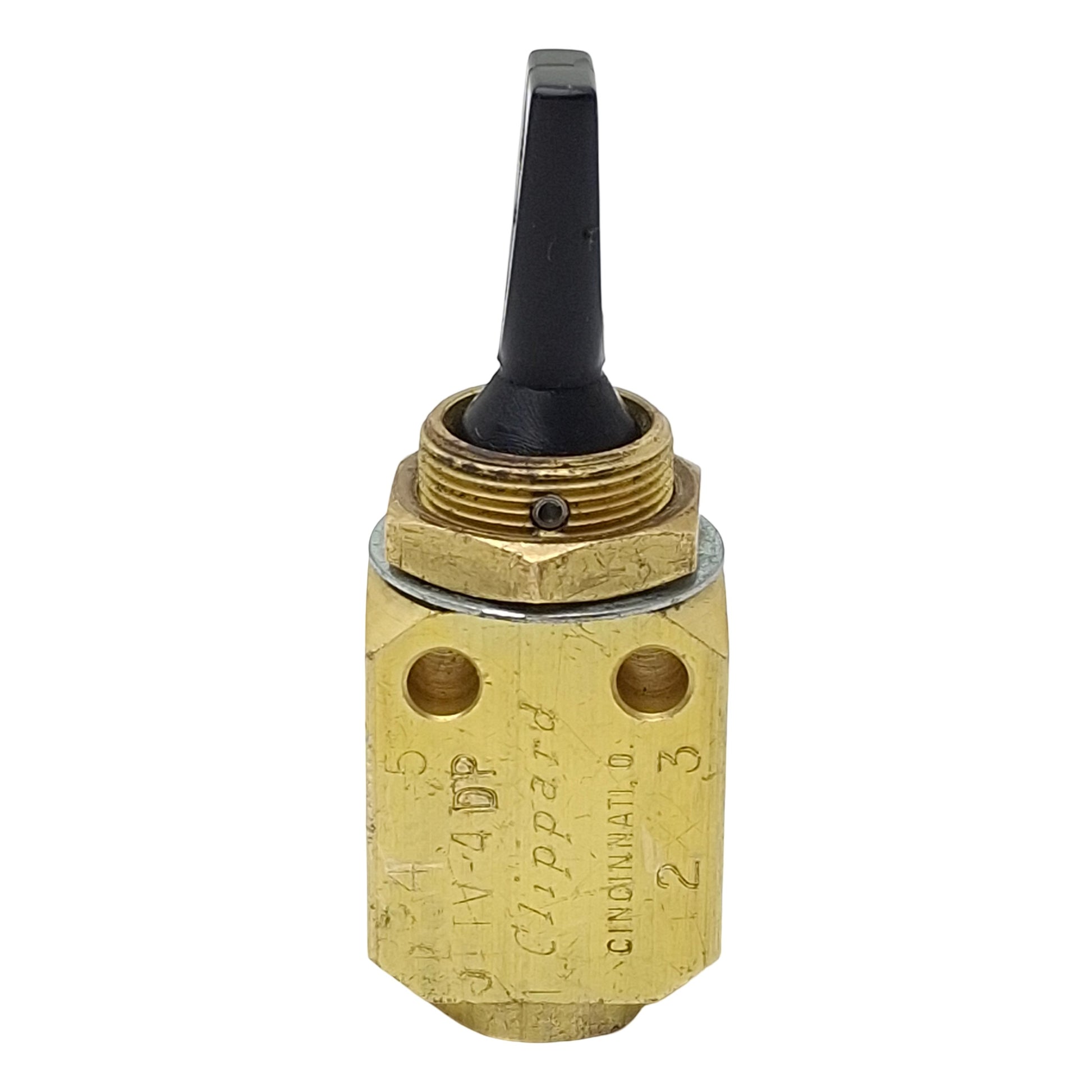 Used Clippard TV-4DP Brass Toggle Valve, 4/3-Way, 1/8in NPT, 150psi Max, 125l/min