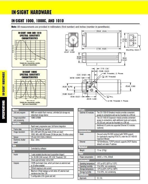 | Item Condition: Used SKU: SB-101571 ST0-6-F From our inventory we are selling a Cognex 800-5749-1 Rev. N In-Sight 1010 Machine Vision Camera 640x480 16MB 30FPS. Specifications: