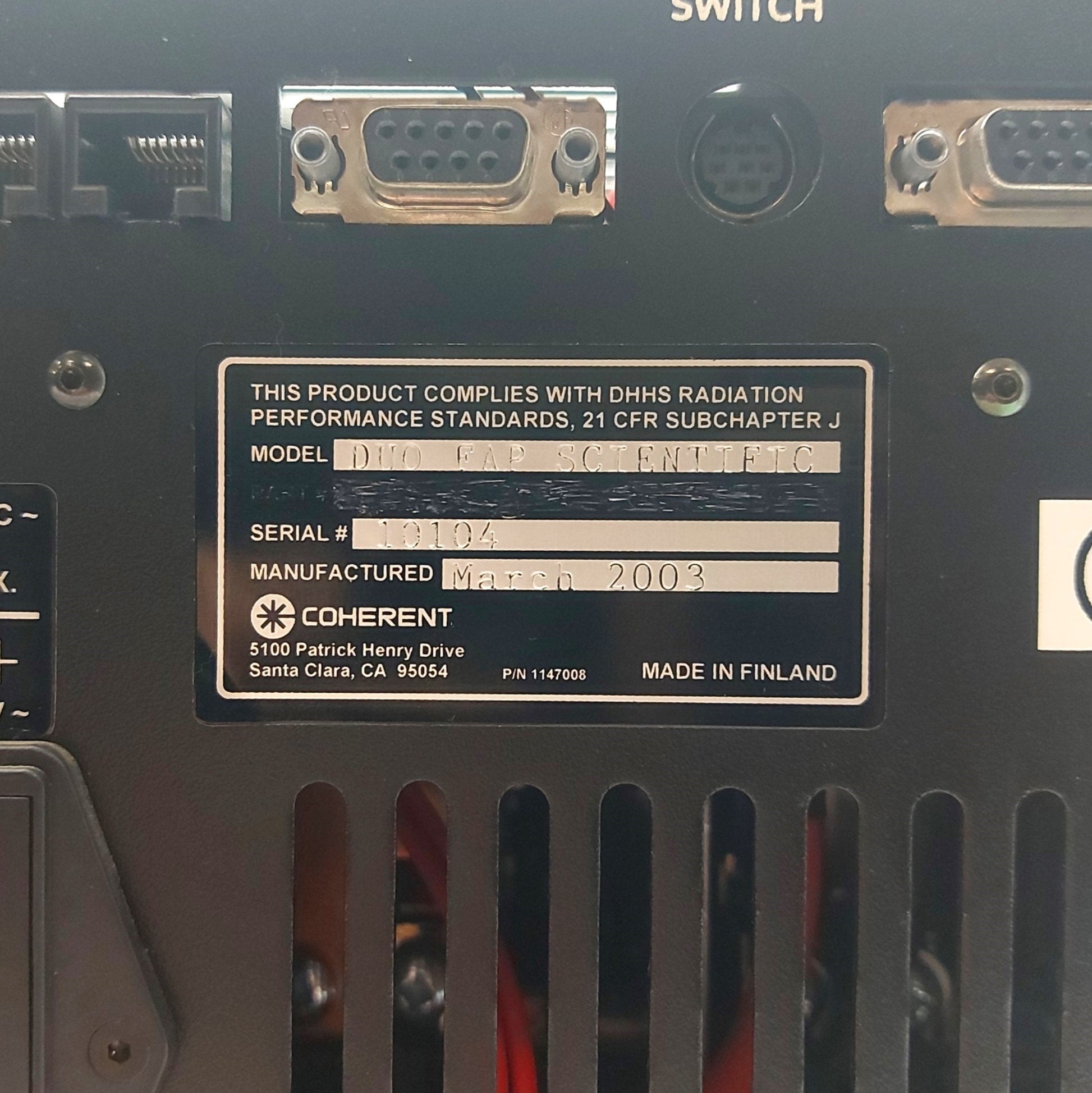 From our inventory we are selling a Coherent Duo FAP Dual Output Fiber Optic Diode Laser 2x 30W @ 800nm 115/230VAC.