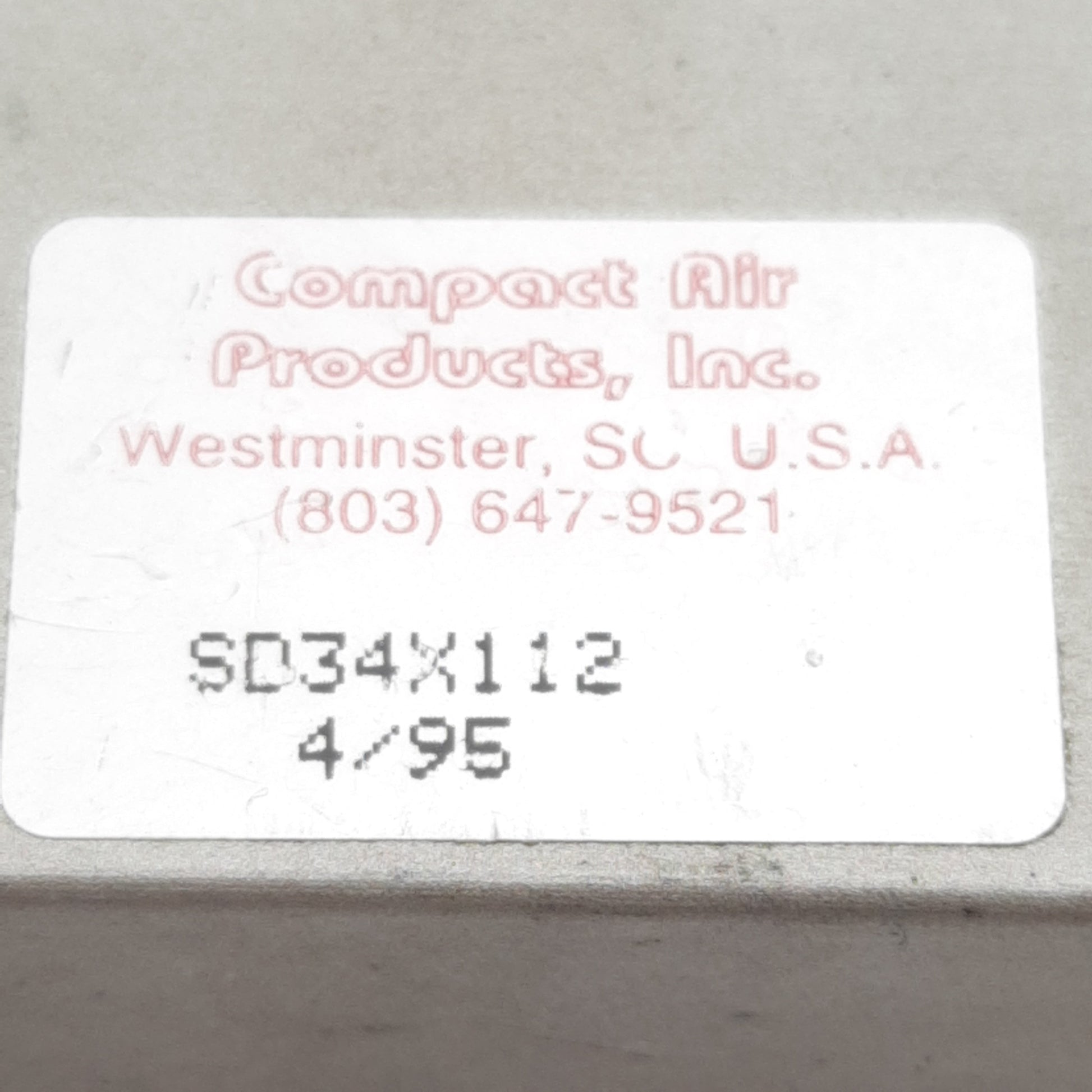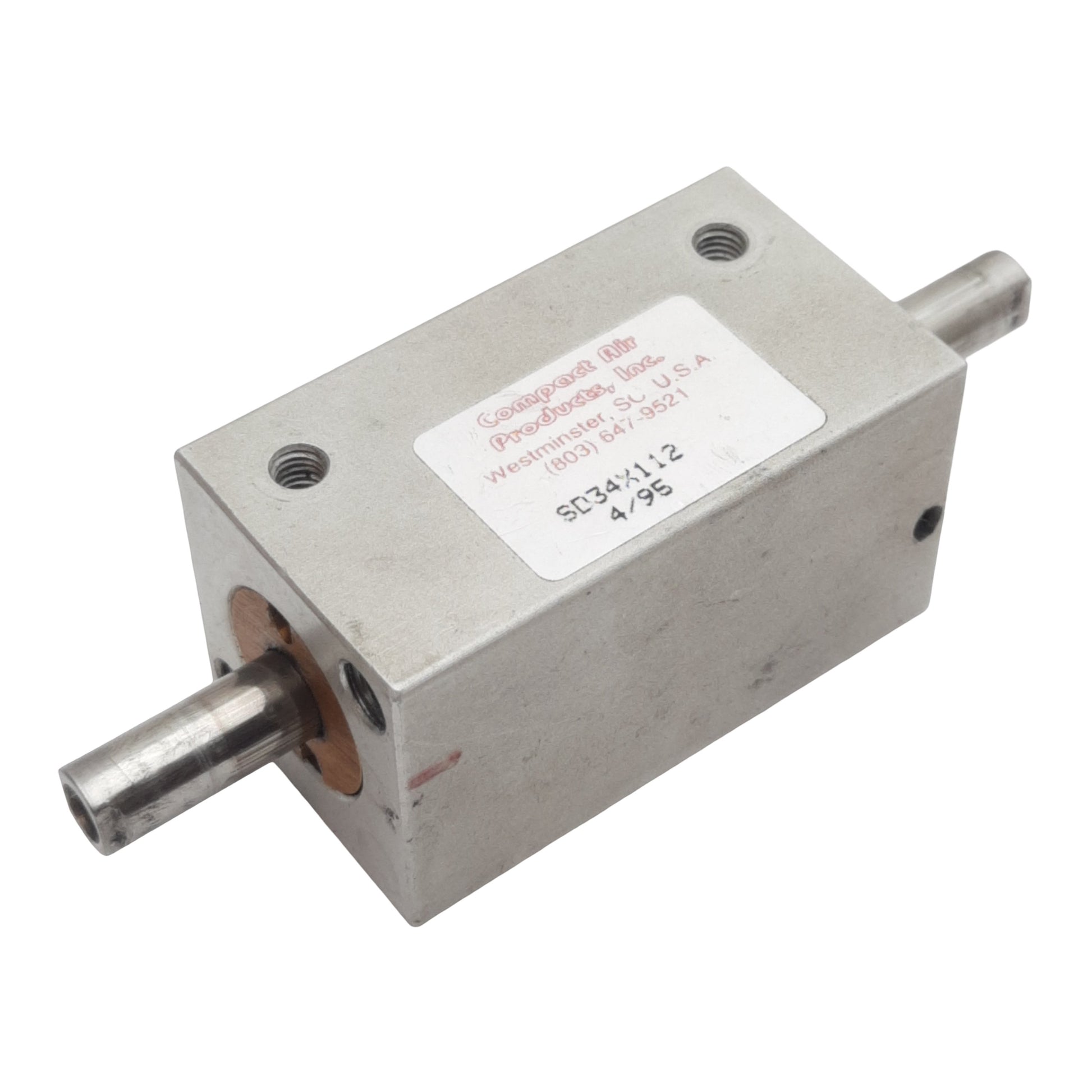 Used Compact SD34X112 Pneumatic Cylinder, ø3/4in Bore, 1-1/2in Stroke, #10-32, 250psi