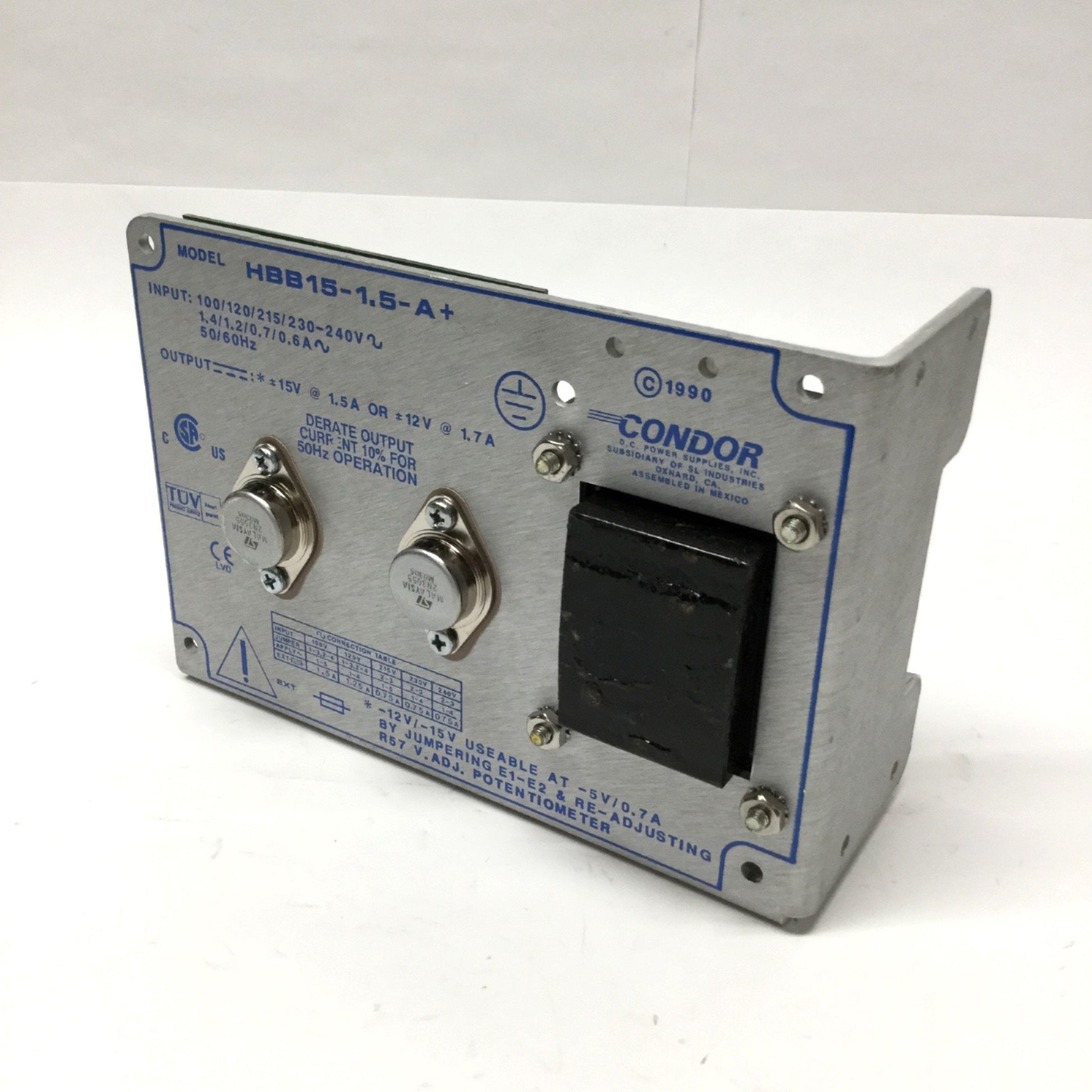 Used Condor HBB15-1.5-A+ Linear Power Supply 100-240VAC In, ±12/15VDC @ 1.7/1.5A