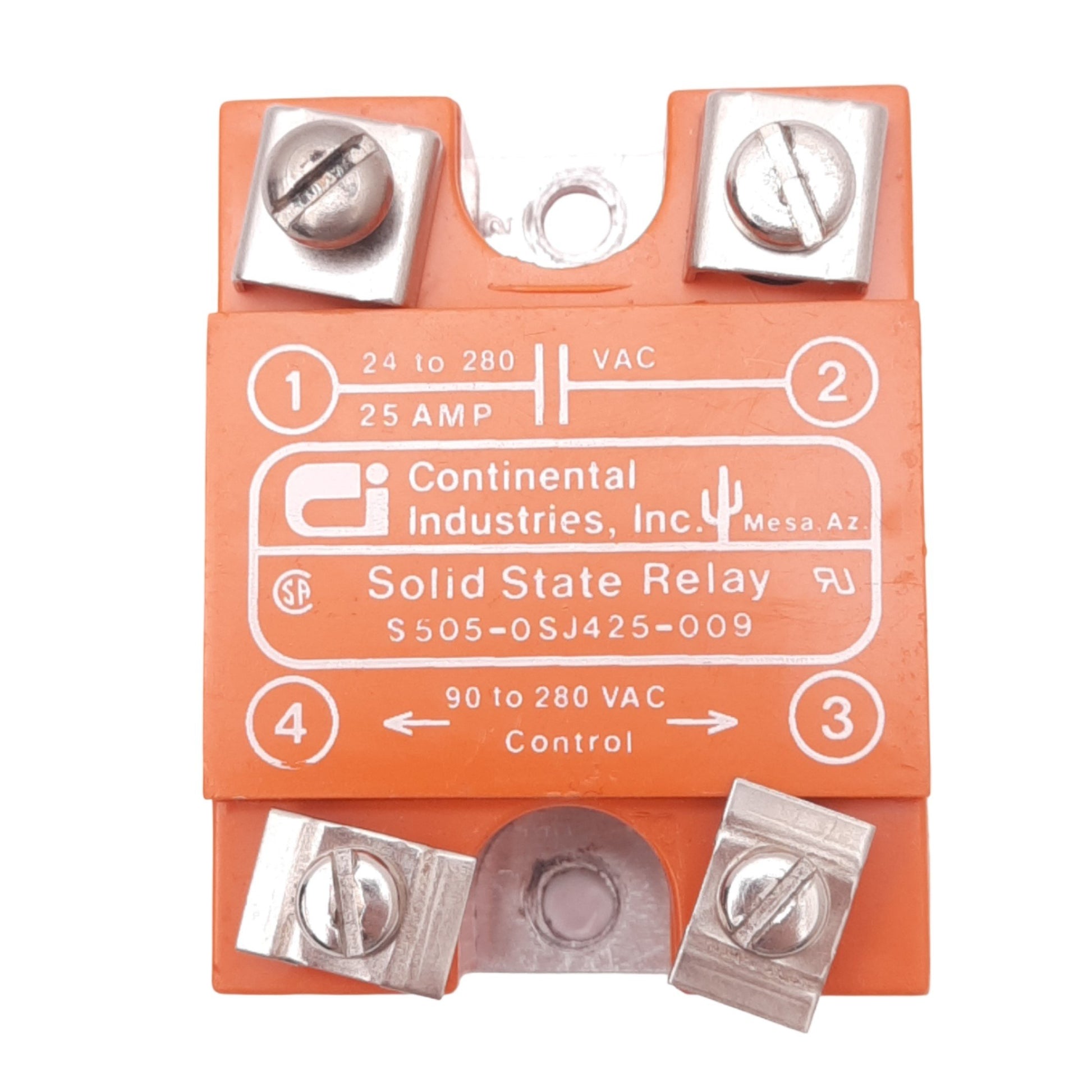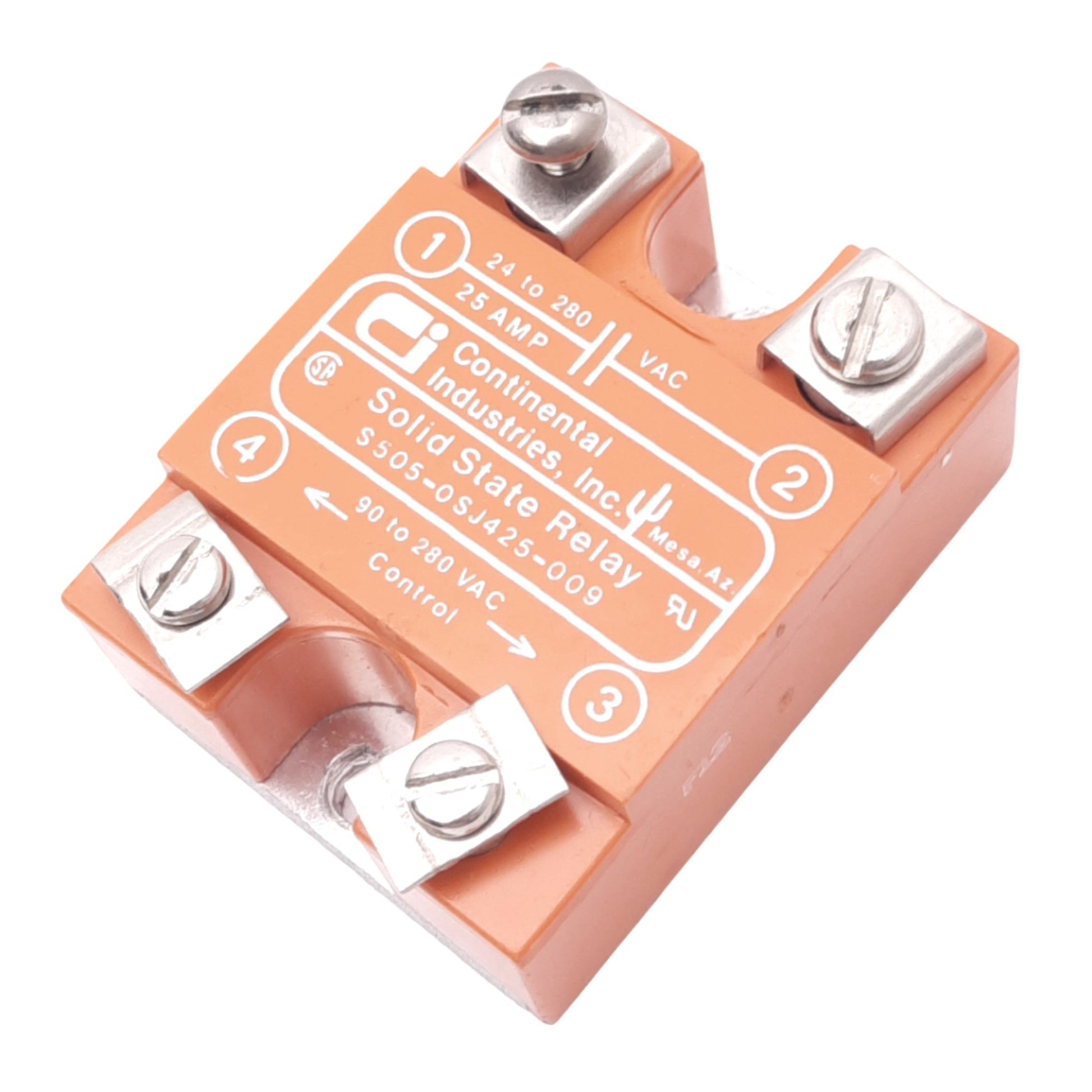 Used Continental S505-0SJ425-009 Solid State Relay, 24-280VAC 25A, 90-280VAC Control