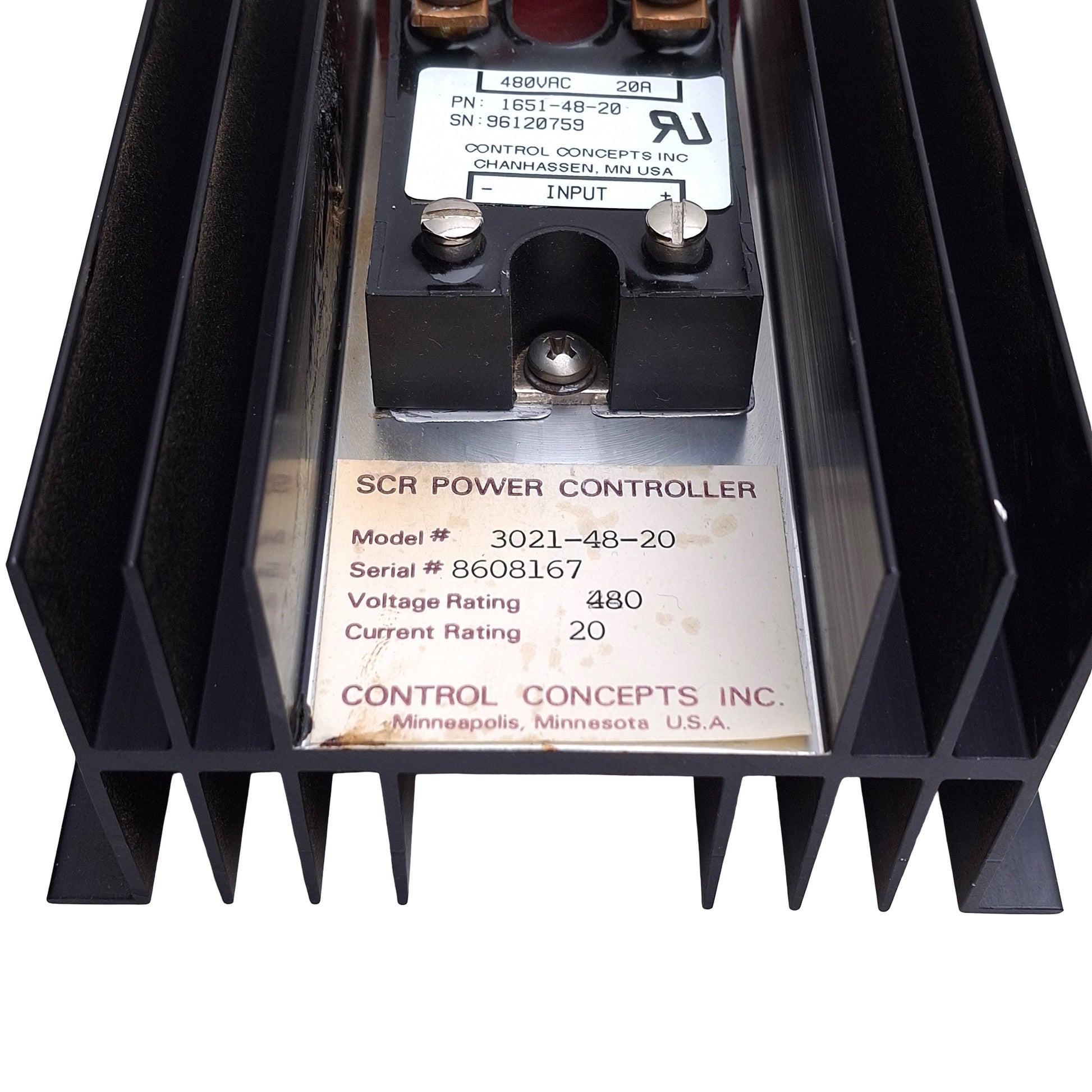 Used Control Concepts 0321-48-20 SCR Heat Sink For Power Controller, 480VAC 20A