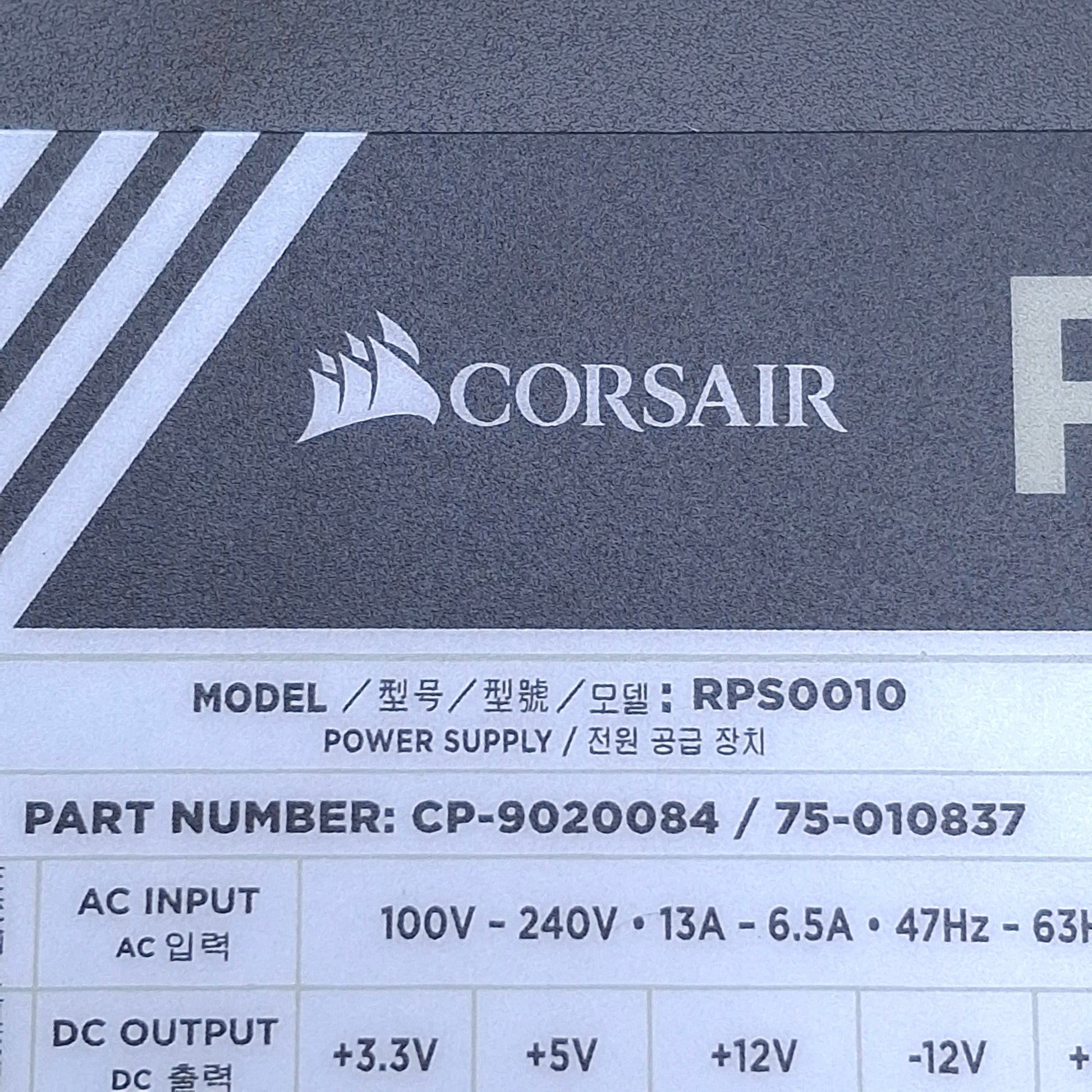 Used Corsair RPS0010 RM1000i Power Supply 1000W Output, 100-240VAC Input, 6.5-13A