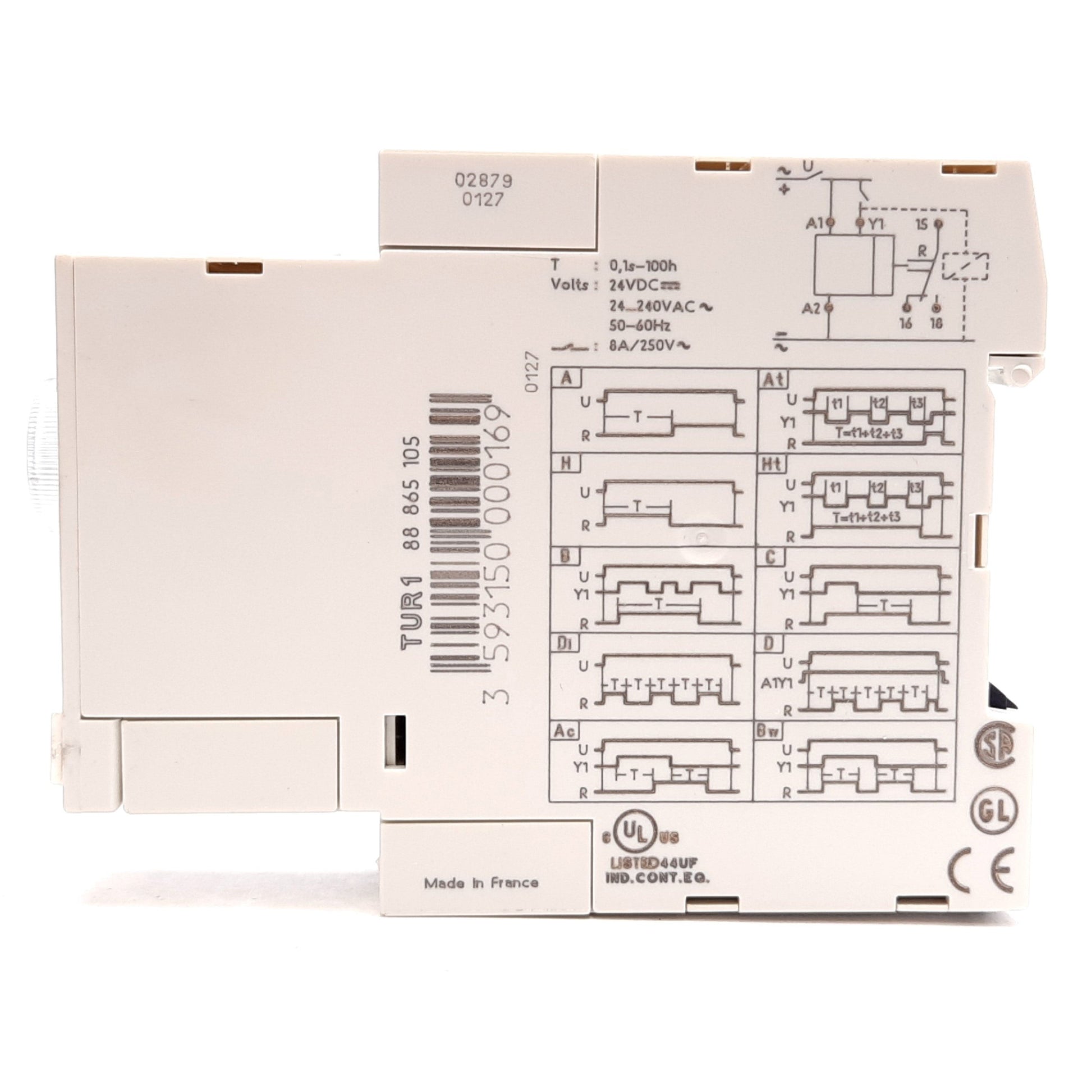 Used Crouzet TUR1 88865105 Timer Relay, 0.1s to 100hr, Control: 24VDC/24-240VAC
