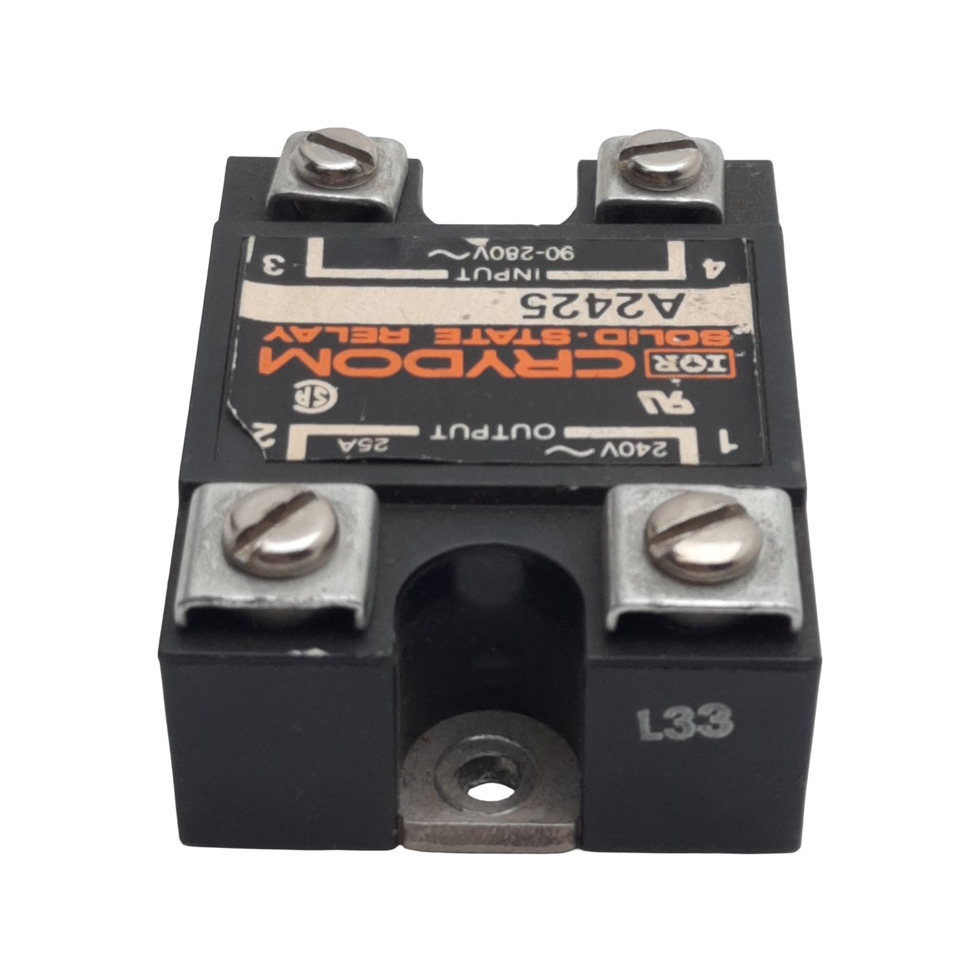 Used Crydom A2425 Solid-State Relay, SPST-NO, 90-280VAC In, 25A 240VAC Out