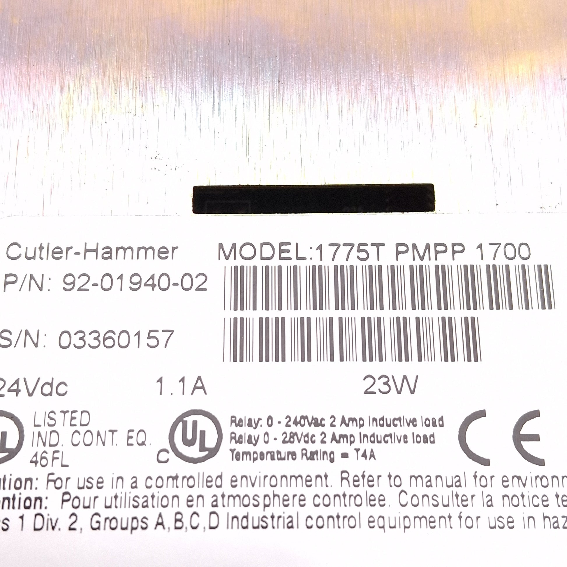 | Next Day Automation is NOT an authorized distributor for Cutler-Hammer. The Original Manufacturer's warranty may not apply. This is a surplus item. |