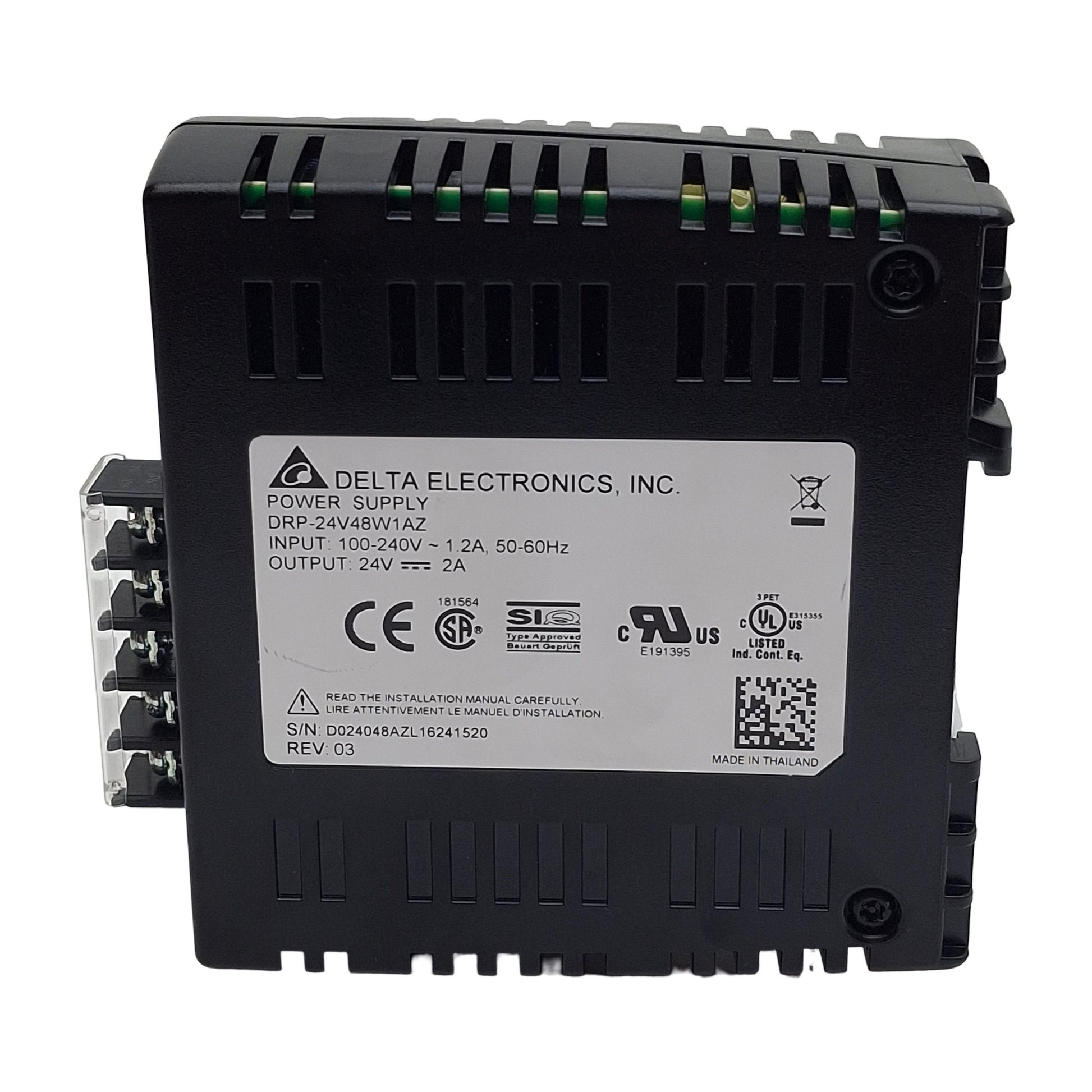 | Item Condition: Used SKU: SB-209515 ST6-4-C From our inventory we are selling a Delta Electronics DRP-24V48W1AZ Power Supply, 100-240VAC In, 24VDC 2A Out, 48W . Specifications: