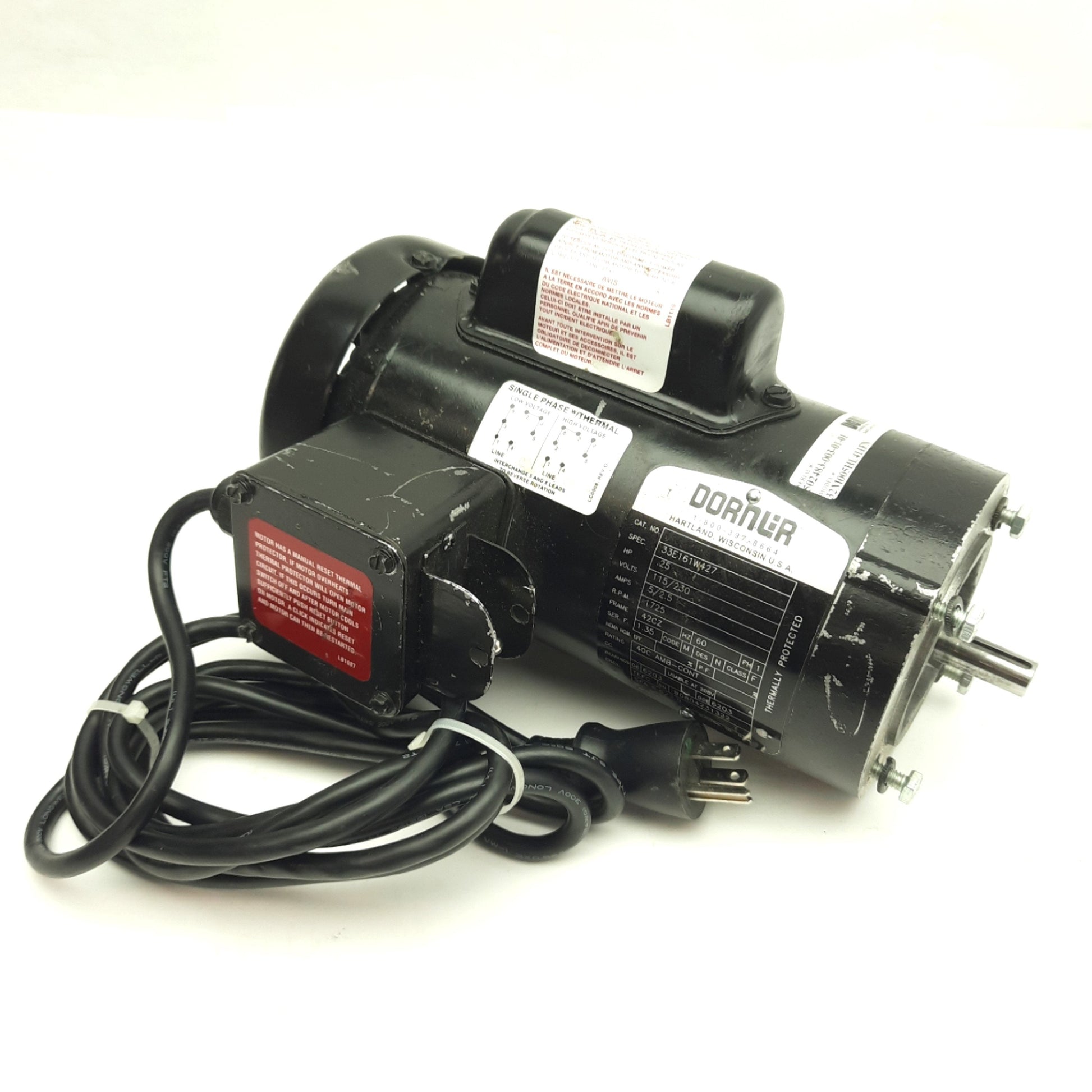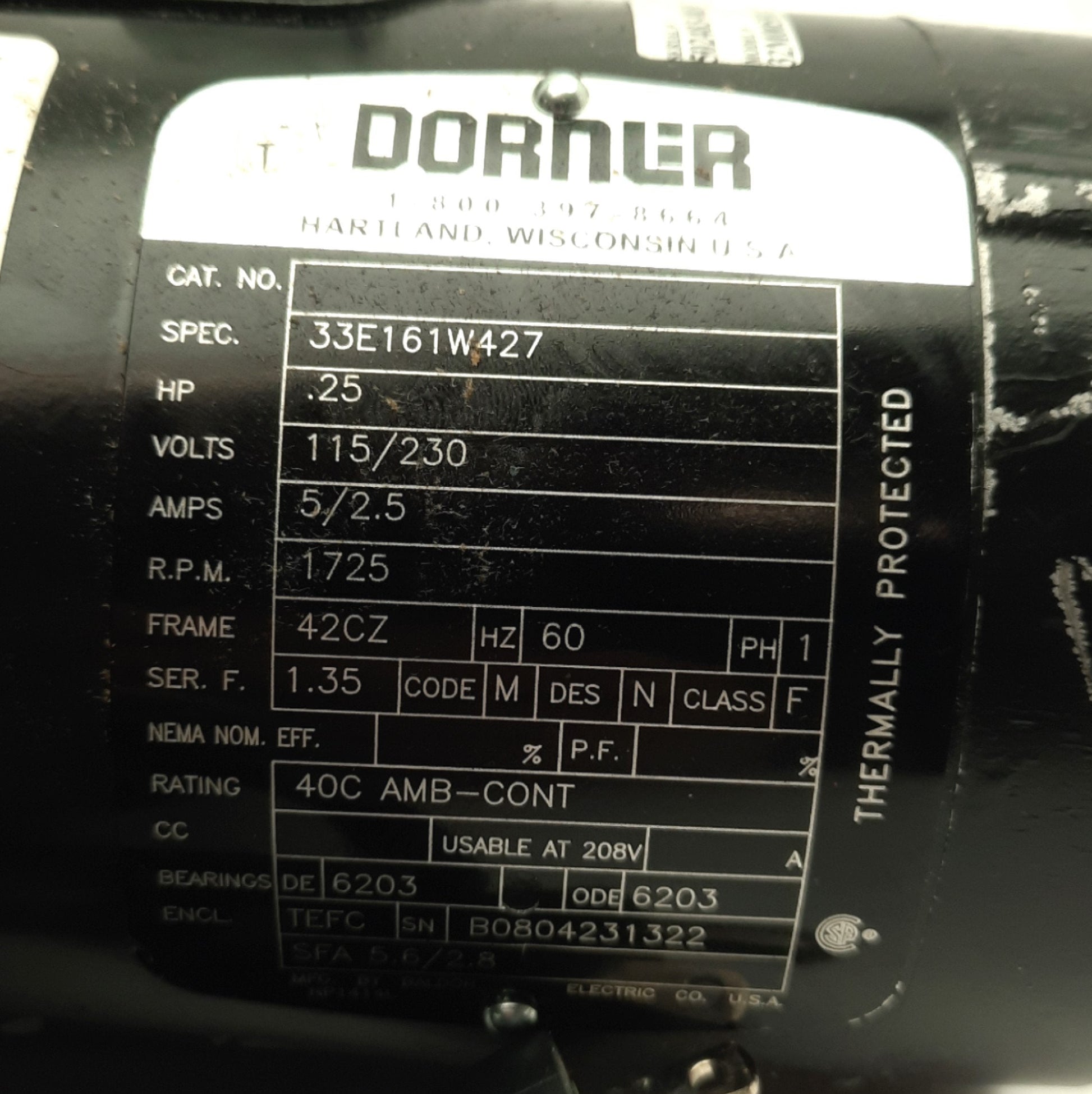 Used Dorner 32M005HL411FN Conveyor Motor, 1/4HP, 115/230VAC, 1725RPM, 42CZ Frame
