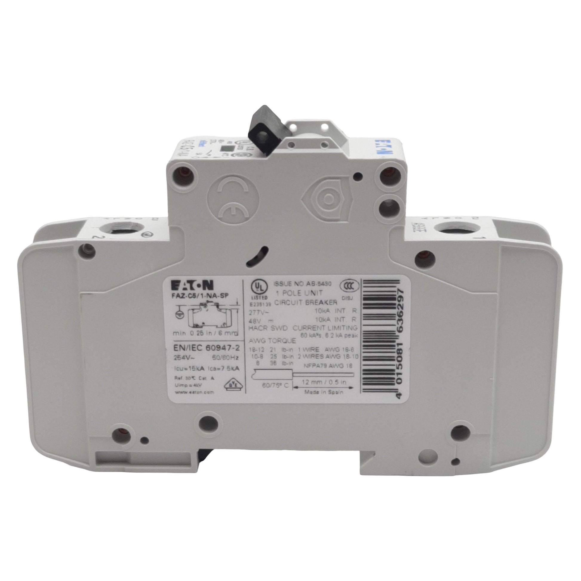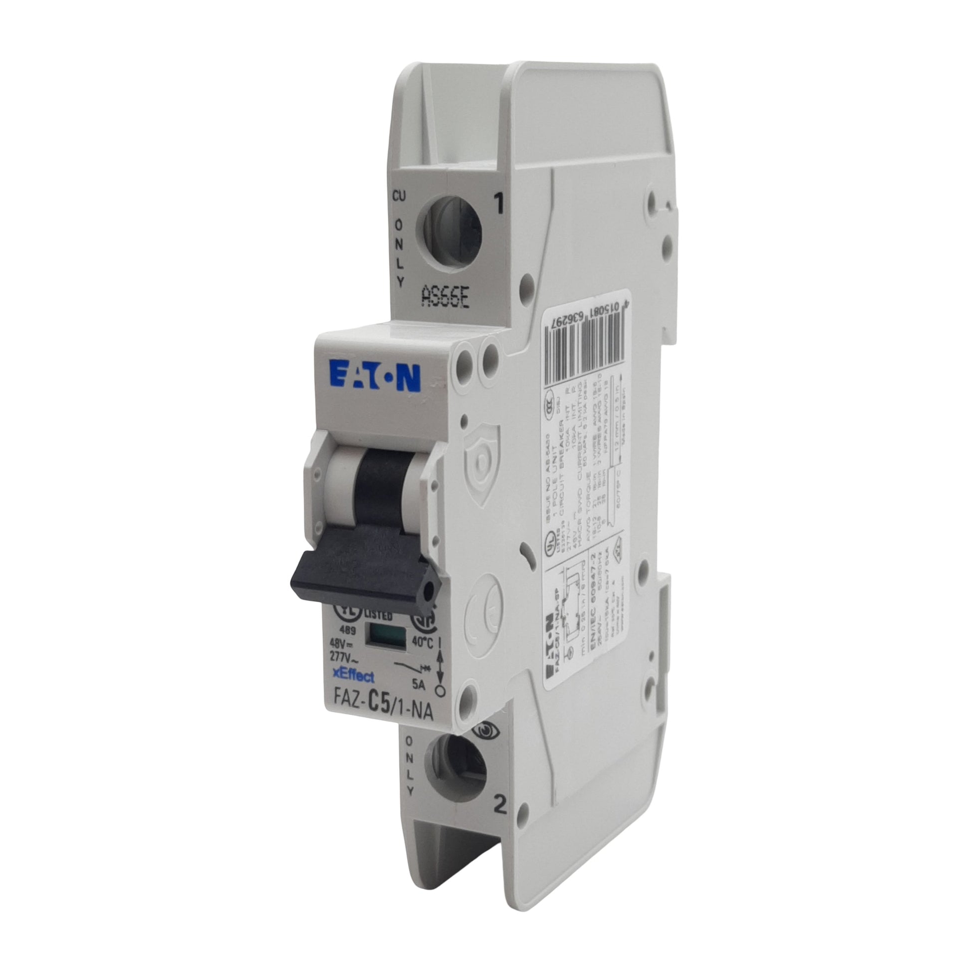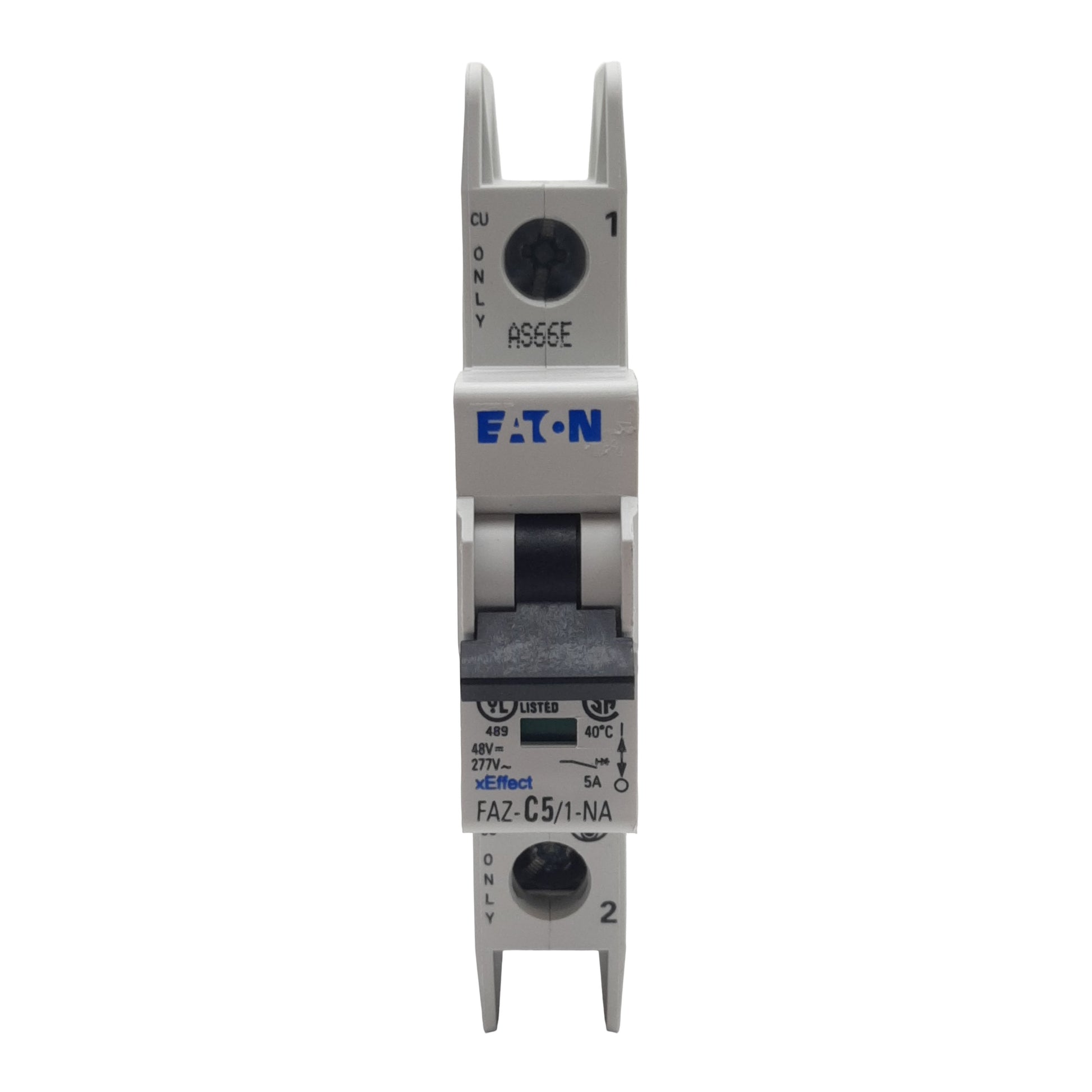 Used Eaton FAZ-C5/1-NA-SP Circuit Breaker, 1-Pole, 5A 48VDC/277VAC, DIN Rail