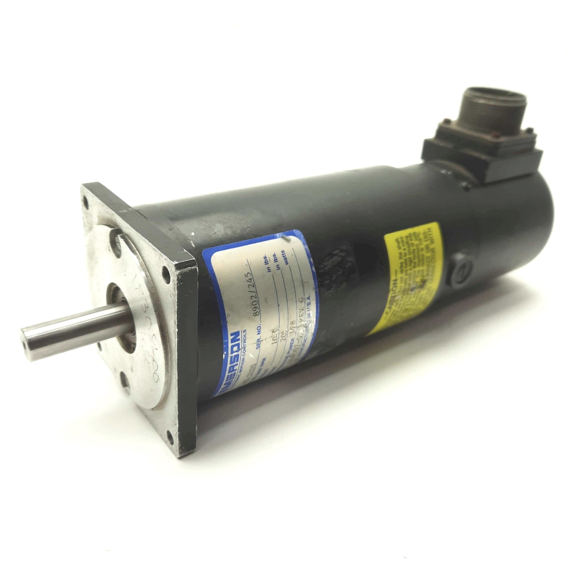 Used Emerson RT-310S Servo Motor, 10in-lbs Torque, 3000RPM, 1/2" Shaft, 3.25" Mount